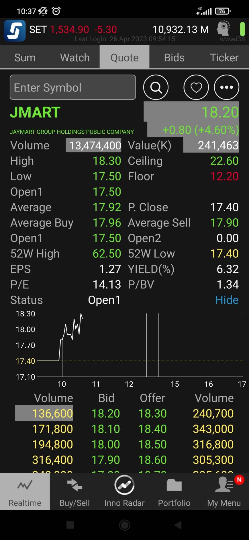 กรอบการลงทุน วันที่ 27/04/2023