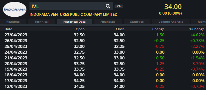 รองลงมาเป็น IVL ราคา 34 เท่าเดิมก่อนหยุดสงกรานต์เด๊ะๆ ไม่หือไม่อือ ไม่เขียวไม่ว่า อย่าแดงพอ เปิดวีคหน้าขึ้น XD 40 ตังค์รับปันผลไปก่อนล่ะกัน