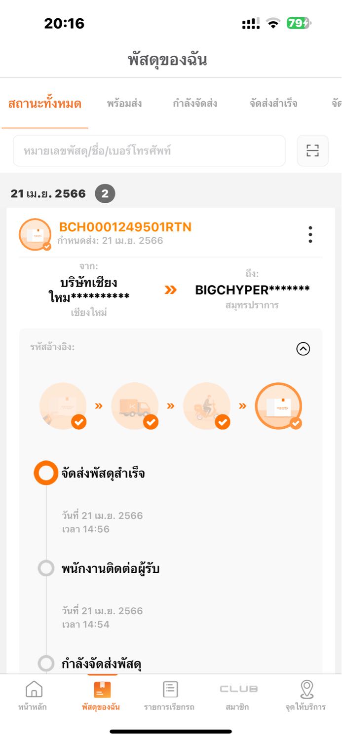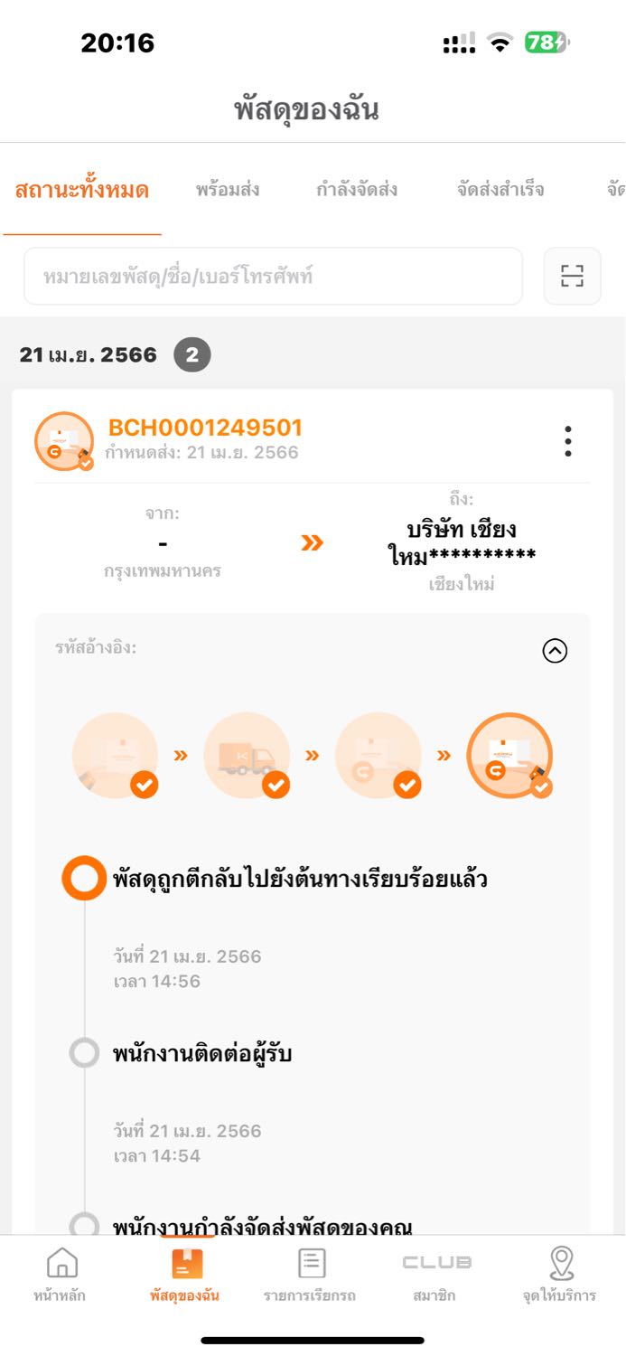 สอบถามเรื่องพัสดุตีกลับ kerry