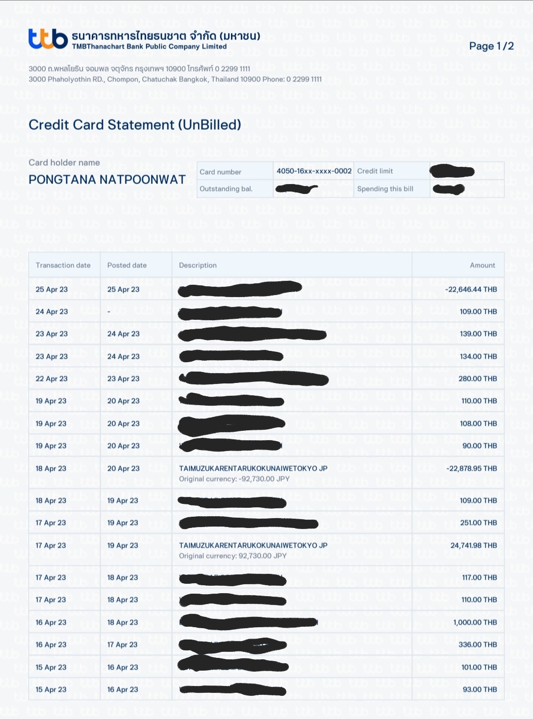 พอดีผมใช้บัตรเครดิตของธนาคารเจ้านึง ซึ่งก็ใช้มาโดยตลอดไม่เจอปัญหา จนกระทั่งผมจำเป็นต้องจองรถเช่าที่ญี่ปุ่นเพื่อใช้ในการงานที่จะถึงนี้ จึงทำการจองไปด้วยเงิน 92,730 JPY โดยโดนหักเป็นเงินไทยจำนวน 24,741 บาท ซึ่งพอวันถัดมาแพลนเดินทางเปลี่ยน ผนังห้อง ซึ่งอยู่ภายใน 24 ชม.หลังจองทำให้เว็บจองคืนเงินให้เต็มจำนวนคือ 92,730 JPY แต่พอตรวจสอบในบัญชีพบว่าได้กลับมาเเค่ 22,878 บาท (หายไป 1,863 บาท)