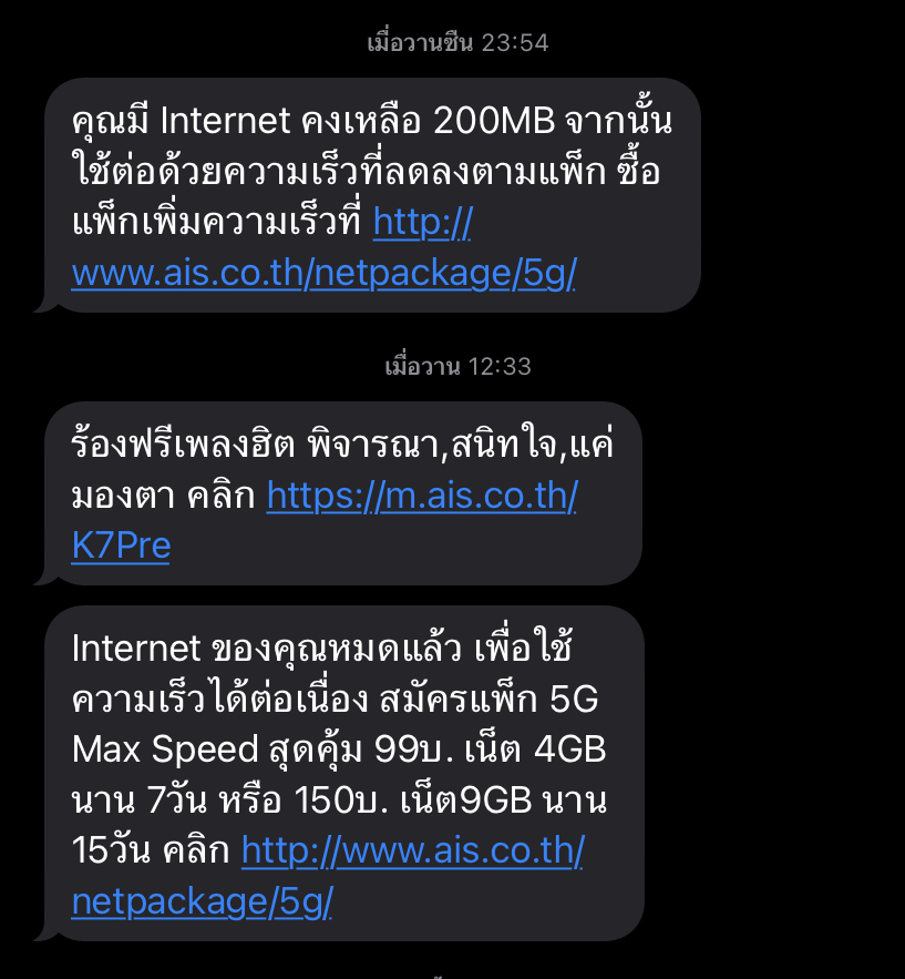 เป็นลูกค้า AIS มา 7 ปี ปัจจุบันใช้ - แพ็จเกจ 1,199 บาท / เดือน เน็ต 5G Unlimited ค่าโทร 900 นาที (ใช้ไม่เคยถึง200นาที) (ครบกำหนดสัญญา 25 กันยายน 2568 นี้) - Disney Plus Hotstar 2,290 บาท / ปี (ครบกำหน