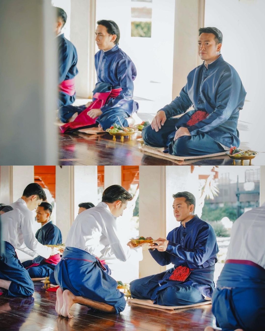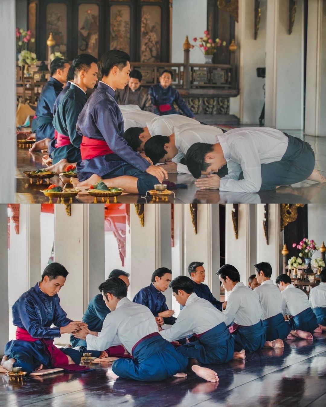 “Wai Khru” (“ไหว้ครู”) is a ceremony which students pay respect and show gratitude to their teachers. It also spiritually formalizes teacher-student relationship. Students present flowers, joss sticks and candles on pedestalled trays to teachers.