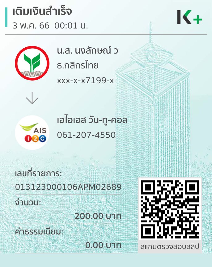 เติมเงินaisไม่เข้าผ่านแอพกสิกรไทย