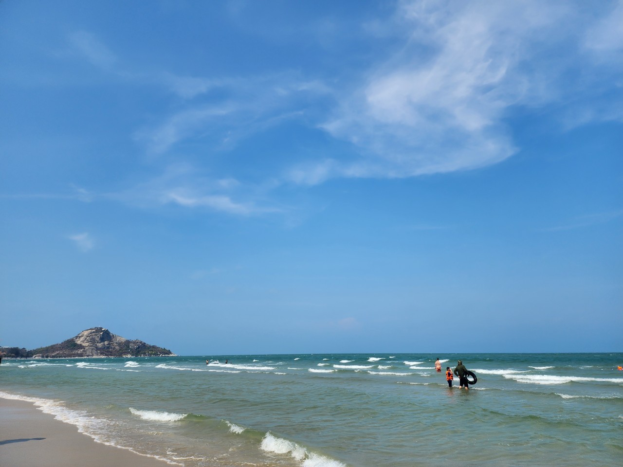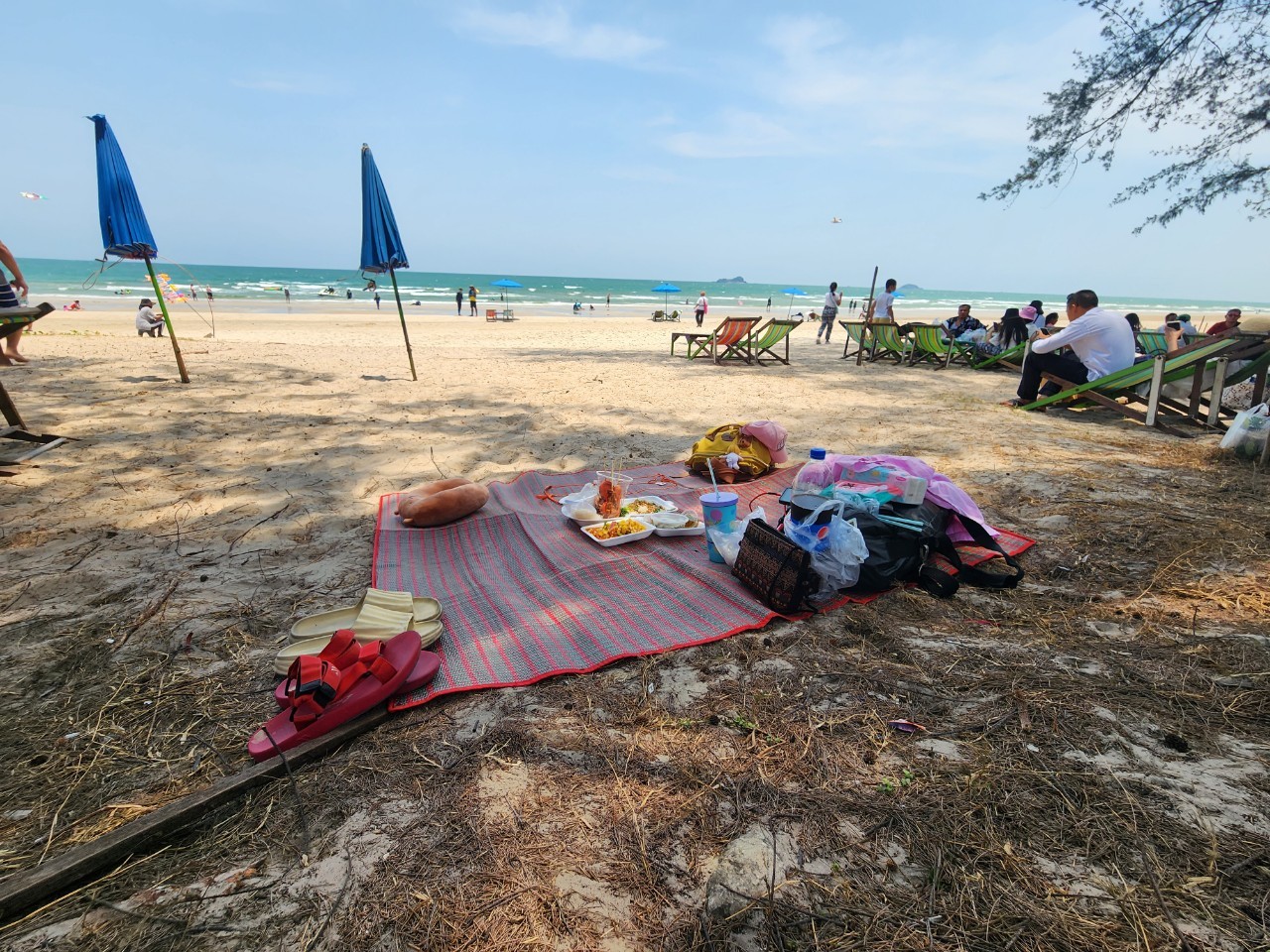 เจ้าหน้าที่เขาจะให้เรานั่งเล่นชิวกันกันที่หาดทรายประมาณ 4 ชั่วโมง เรากับเพื่อนก็เดินไปเปลี่ยนเสื้อผ้าและหาของกินกันตามประสามนุษย์อ้วน
