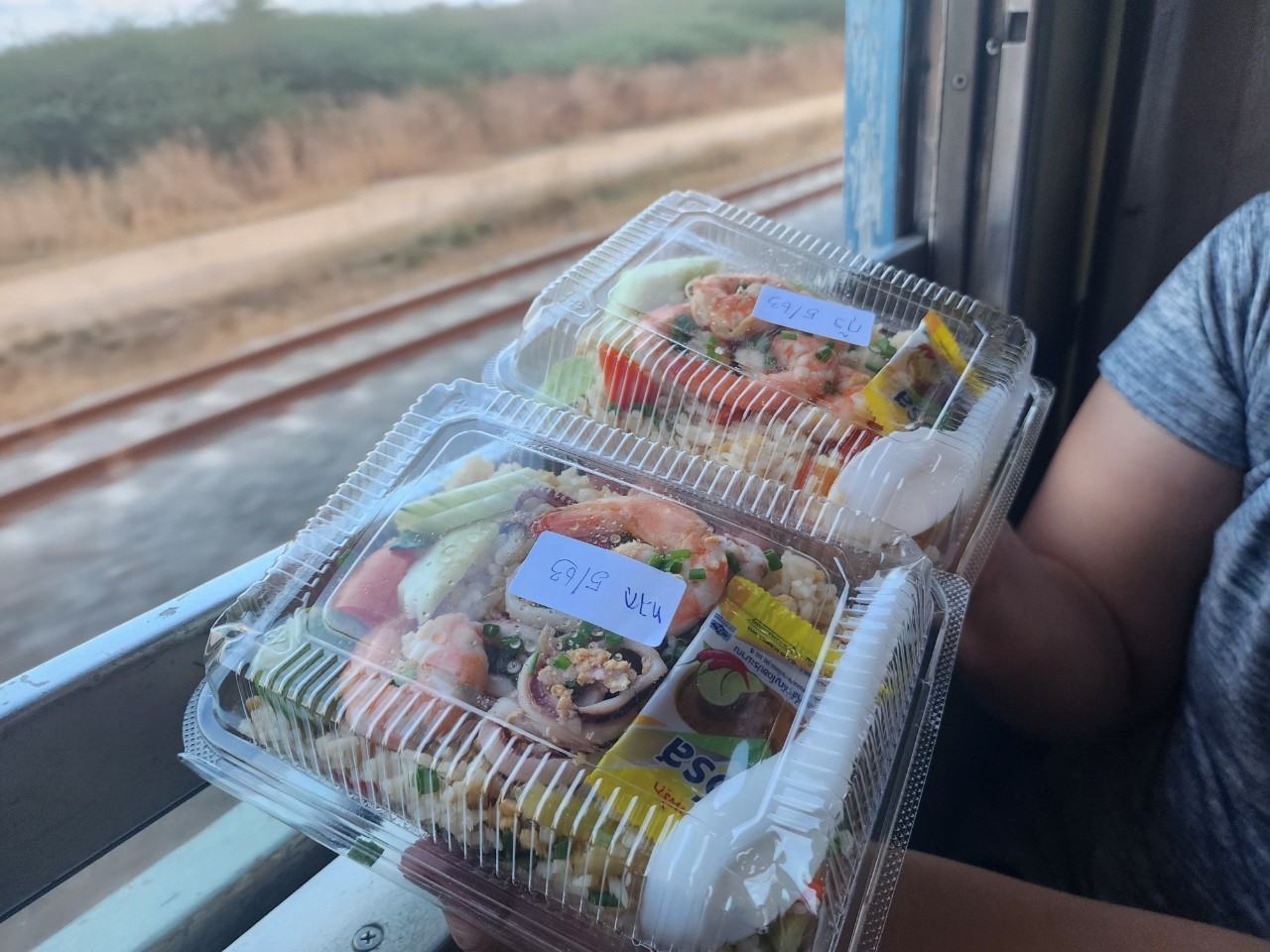เรากับเพื่อนก็สับเลยรัวๆๆ นาทีนี้ รีบซื้ออะไรที่กินง่ายๆ แล้วรีบวิ่งไปขึ้นรถไฟกัน พอขึ้นปุ๊ป รถไฟออกปั๊ป เราเป็นคู่ที่เจ้าหน้าที่เดินมารอเพื่อตามขึ้นรถล๊อตสุดท้ายจริงๆ เป็นอารมณ์ก้าวช้าอีกสองวิ ก็คือตกเครื่องได้เลย