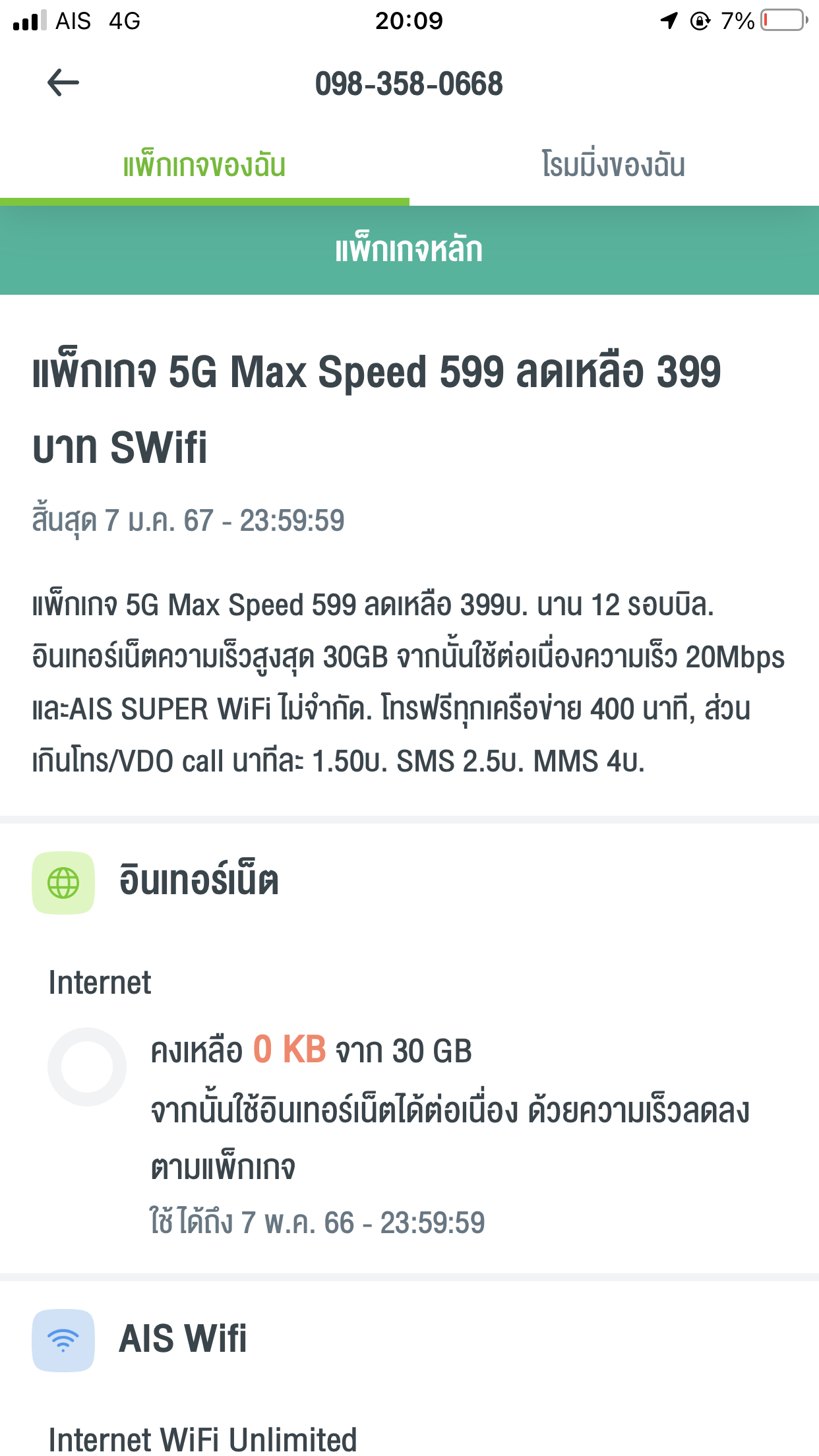 ขอทราบโปร SMS รายวัน และรายเดือนของ Ais ค่ะ