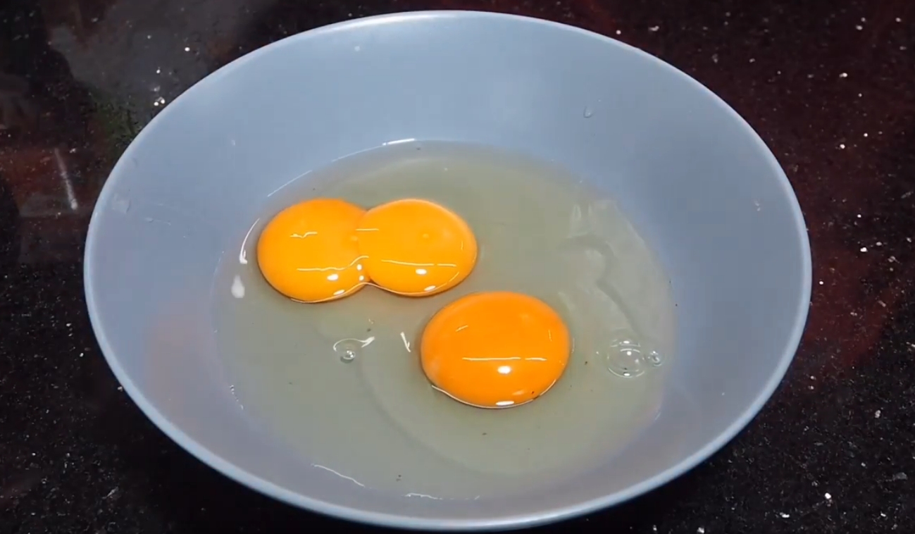 ตอกไข่ไส่ถ้วย แล้วตีให้เข้ากัน