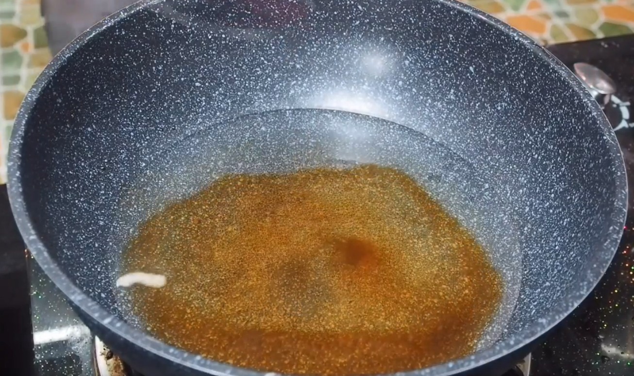 นำกะทะขึ้นตั้งไฟแล้วใส่เครื่องปรุง