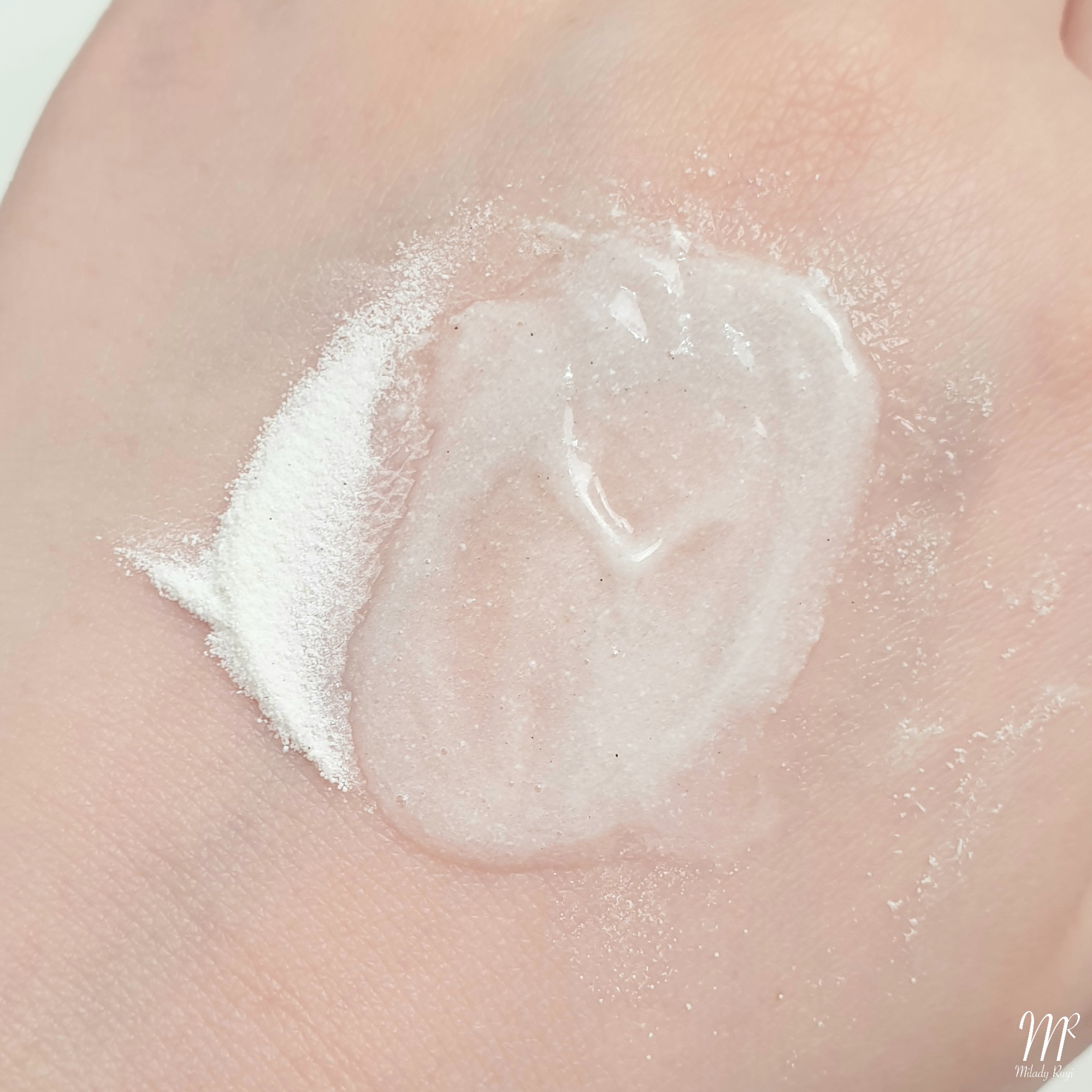 น้งเป็นสครับละเอียดยิ่งกว่าทรายขาว เกล็ดเล็กจิ๋วหลิวไม่บาดผิว ผสมน้ำนิดหน่อยแล้วสครับจะเนียนขึ้นอีกนิด วนบนผิวไม่มีบาดเลย วนซักพักจะมีฟองขึ้นนิดหน่อย นิดเดียวเท่านั้น ตัวนี้ล้างออกมาแล้วผิวละเอียดขึ้นมาก