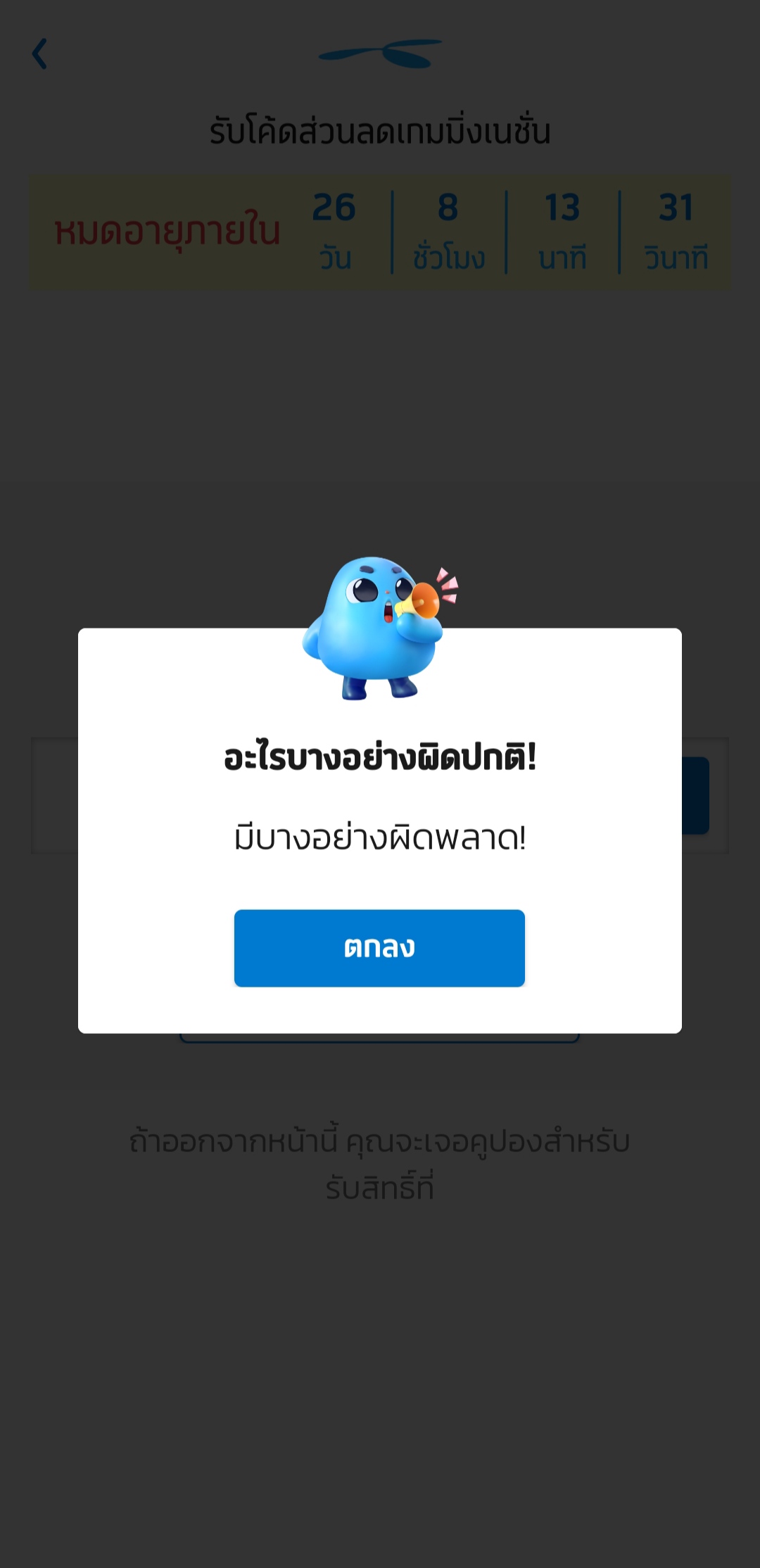 ทำไมกดใช้โค้ด ส่วนลดเกมมิ่งเนชั่น 50บาท ในแอปไม่ได้ พอกดจะขึ้นมีบางอย่างผิดพลาดตลอด เป็นมาหลายเดือนแล้ว