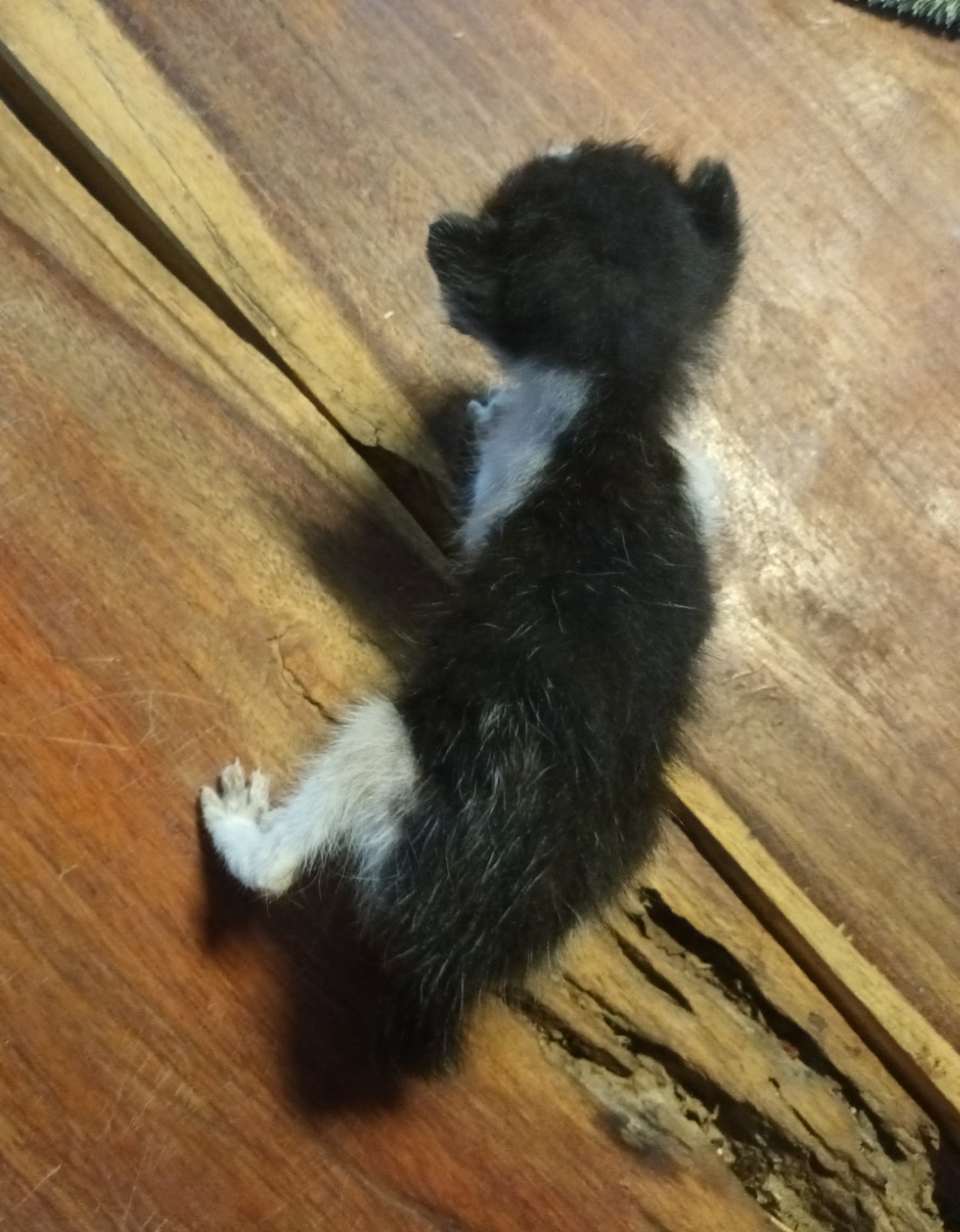 พอดีว่ามีแมวมาออกลูกที่บ้าน4ตัว แต่คาบไป2 แล้วไม่กลับมาเอา2ตัวที่เหลือ จึงจำเป็นต้องเลี้ยงไว้ เราซื้อนมแพะให้น้องกิน แรกๆใส่ไซริ้งค์น้องกินได้ไม่เยอะ พอซื้อขวดน