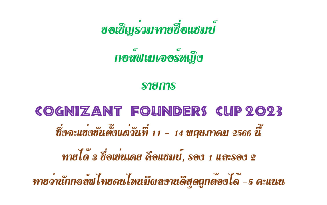 ขอเชิญร่วมสนุกทายแชมป์กอล์ฟหญิง รายการ COGNIZANT FOUNDERS CUP 2023