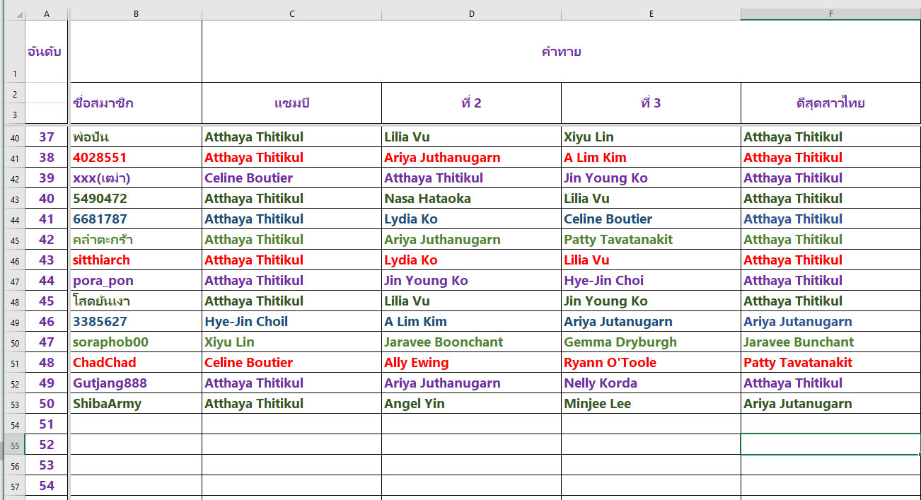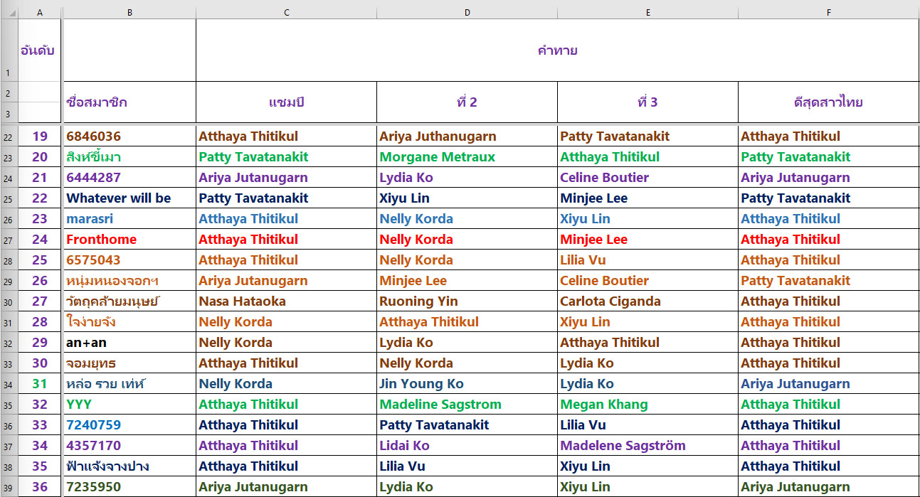 กติกาการคิดคะแนน มีดังนี้ รายการนี้ มีนักกอล์ฟของเราร่วมการแข่งขัน 6 คน ได้แก่ 1. ธิฎาภา สุวรรณะปุระ (จัสมิน)2. พรอนงค์ เพชรล้ำ (แหวน)3. ปภังกร ธวัชธนกิจ (แพตตี้)4. อาภิชญา ยุบล
