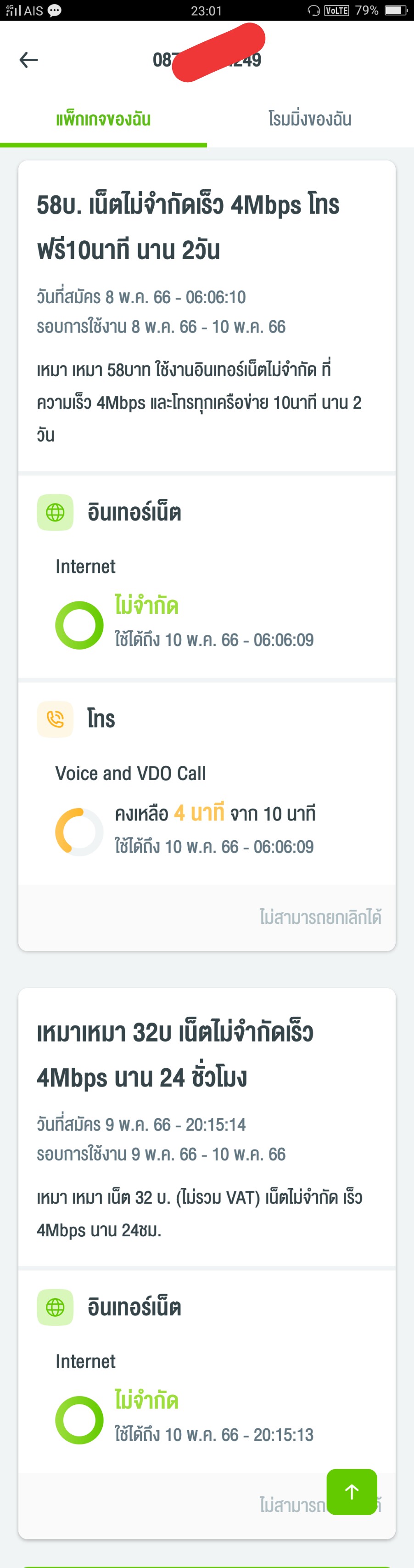 คือผมต้องการยกเลิก เหมา เหมา 130 บาท (รวมVAT) เน็ตไม่จํากัด เร็วสูงสุด 2Mbps ใช้ได้ 7วัน เพื่อเปลี่ยนไปใช้แบบร◌ายวันต้องท◌ำไงคับ หน้ายกเลิกในแอปก็ไม่ขึ้น ไม่ได้อยากได้เงินคืนแค่ต้องการยกเลิก