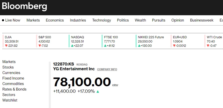 ราคาหลักทรัพย์มีการพุ่งทะยานขึ้นไปสูงสุดที่ 79,500 วอน หรือคิดเป็น +19.19 % จากราคาปิดเมื่อวาน และเป็นราคาสูงสุดในรอบ 1 ปี
