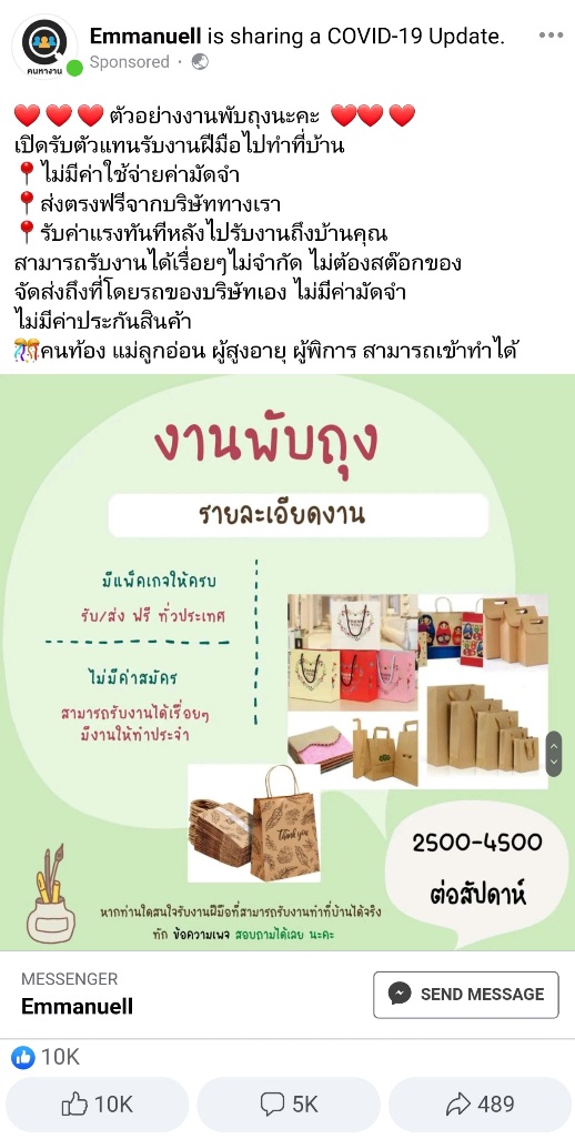 รวมโฆษณาของมิจฉาชีพ ในเฟซบุ๊ค ของวันนี้
