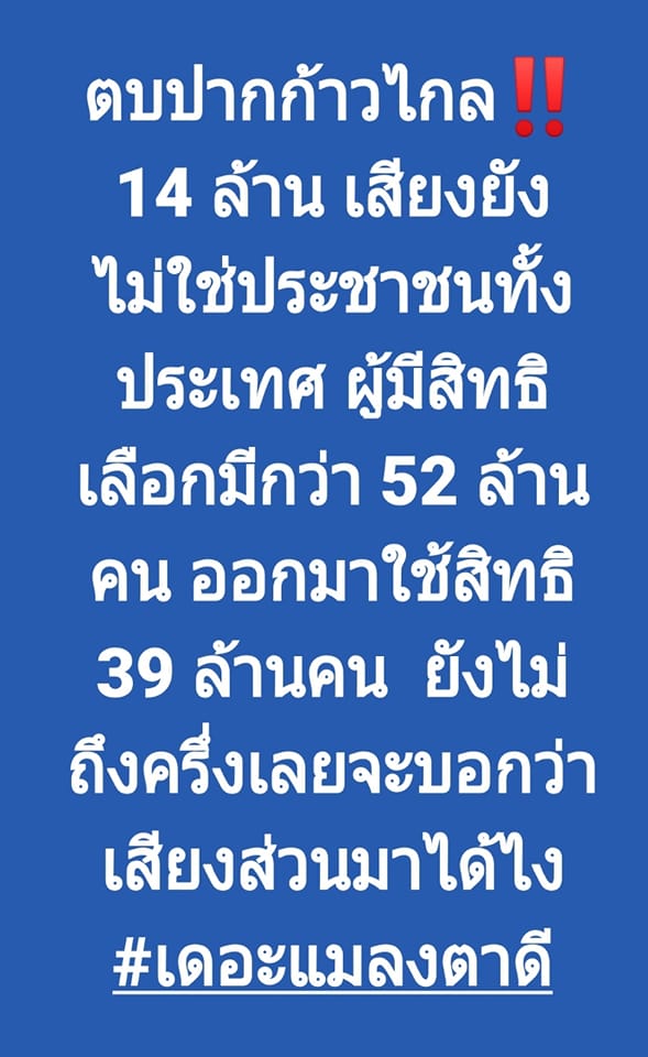 ตบปากก้าวไกลฉีก‼ 14 ล้าน ไม่ใช่ประชาชนทั้งประเทศค่า ผู้มีสิทธิเลือกมีกว่า 52 ล้านคน