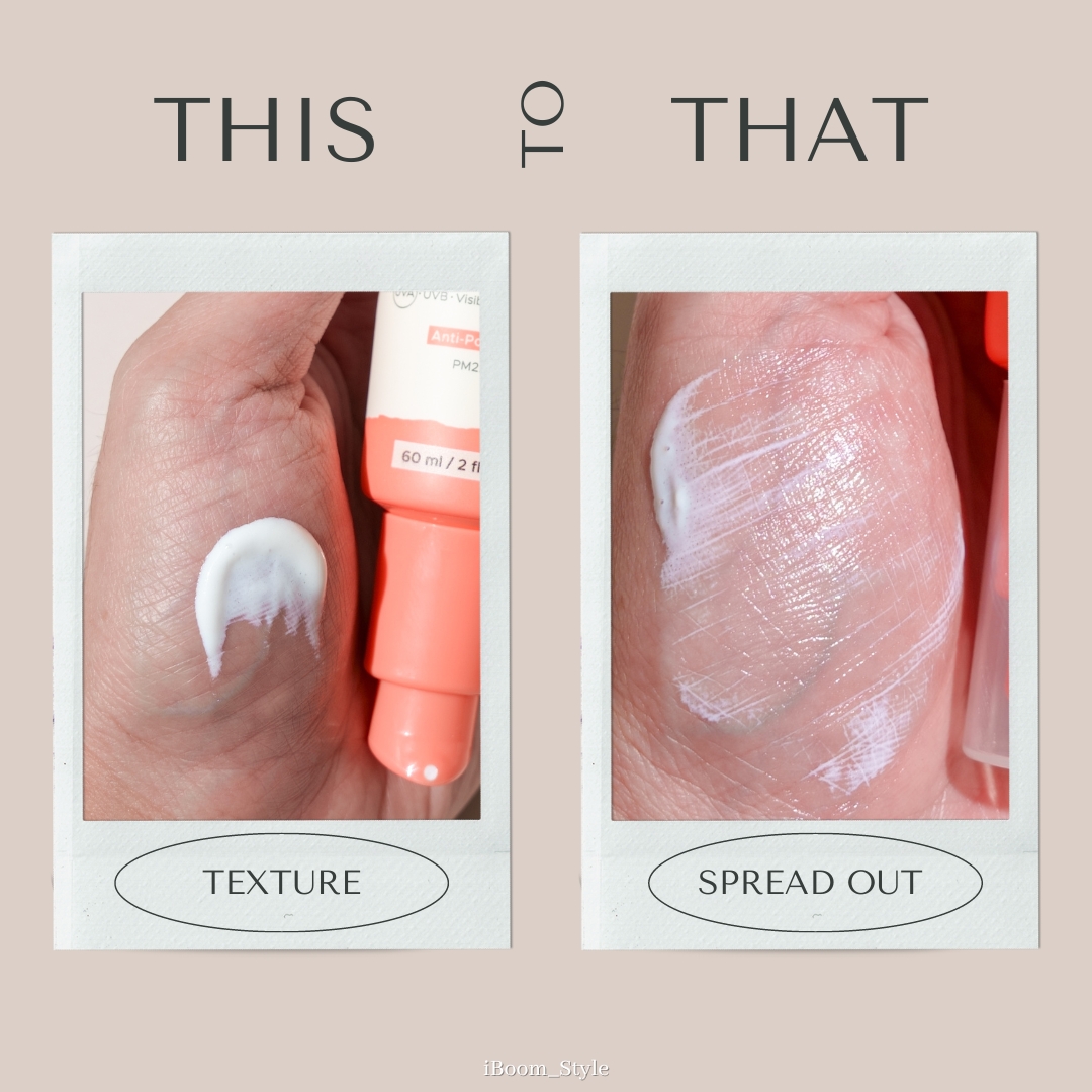 Texture (เนื้อสัมผัส) ในรูปแบบ Gel-Based ที่บางเบาและซึมไวติดอันดับต้นๆ ของกันแดดที่เราเคยใช้มาและพอเซตตัวแล้วกลับมอบความชุ่มชื้นบนผิวได้ค่อนข้างดีเลยทีเดียว