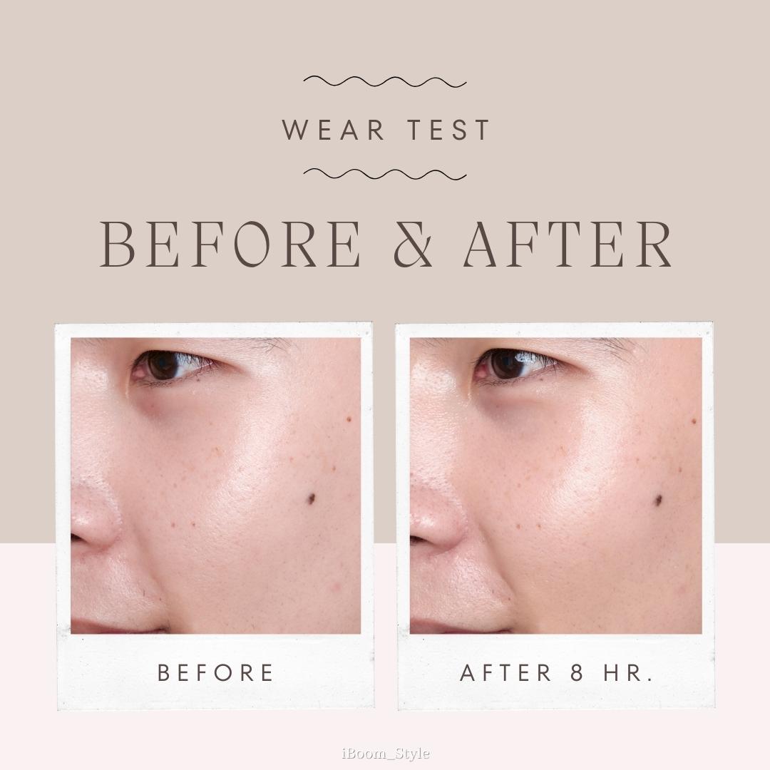 เรามีเก็บภาพทดสอบ Wear Test หลังทา Faymé Light & Lock Water Gel Sunscreen SPF 50+ PA++++ ประมาณ 8 ชั่วโมงที่ใช้ชีวิตตามปกติส่วนมากจะอยู่ในที่ร่มเป็นหลัก จะมีออกไปข้างนอกโดนแดด ความร้อน โดนลมบ้างประมาณวันละ 1 ชั่วโมง เท่าที่เรามองด้วยสายตาและสังเกตุจากผิวตัวเองแอบรู้สึกว้าวอยู่ไม่น้อยเรื่องความชุ่มชื้นที่ได้จากความบางเบาของกันแดด แน่นอนแหละว่าต้องมีความมันเพิ่มขึ้นเป็นธรรมดาแต่สำหรับเราแล้วอยู่ในเกณฑ์ที่รับได้ เอาจริงๆ แอบรู้สึกว่าผิวหลังผ่านไป 8 ชม. ดูสุขภาพดีกว่าด้วยซ้ำแหละ