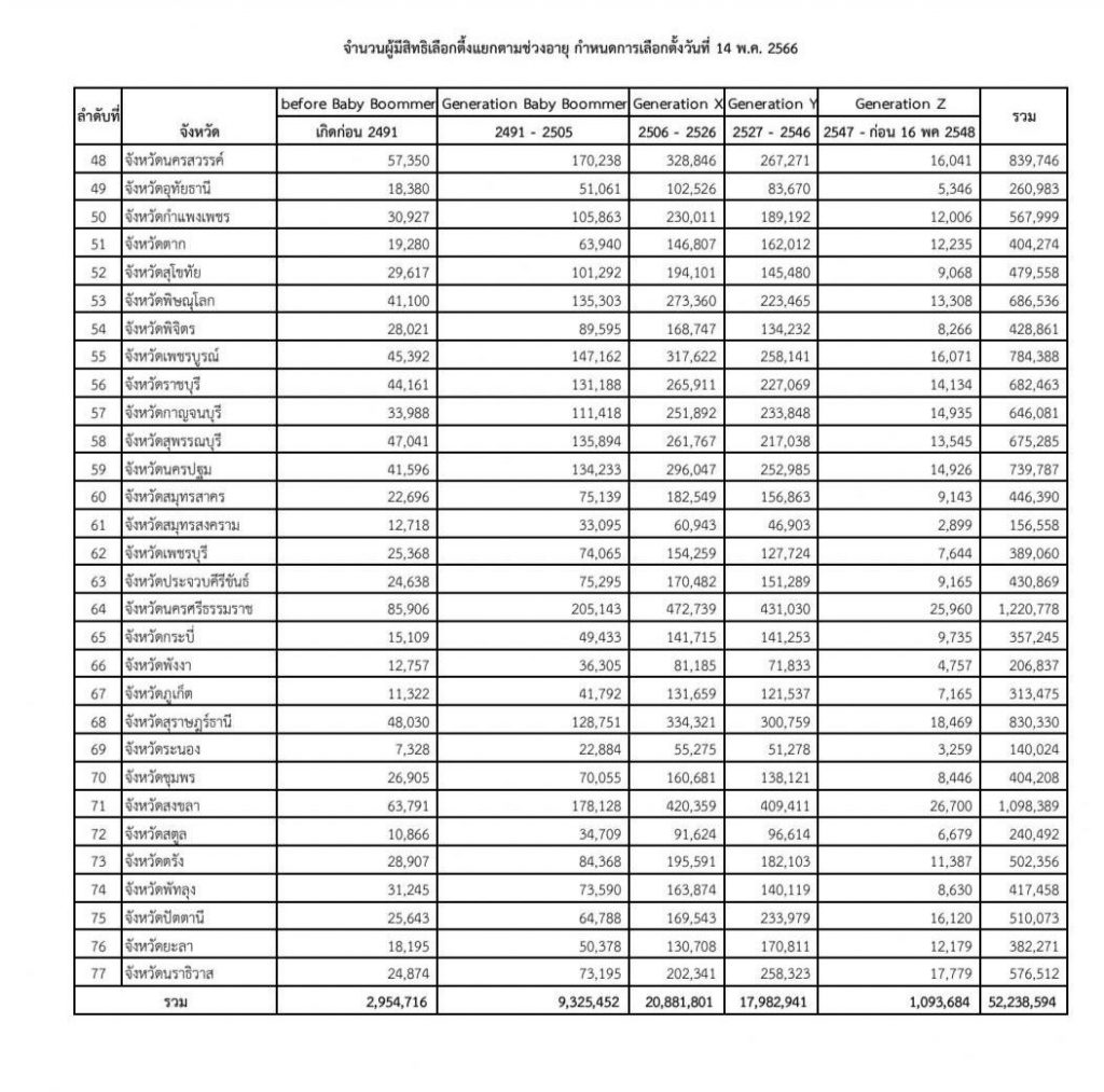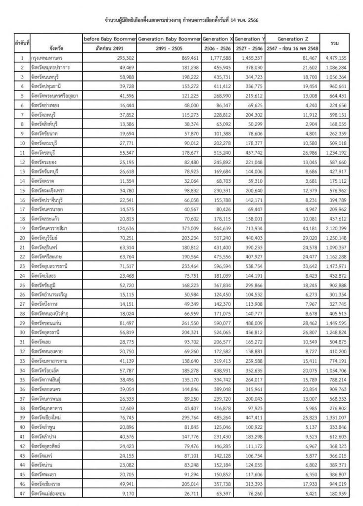 เปิดตัวเลขผู้มีสิทธิเลือกตั้ง 2566 ทั่วประเทศ