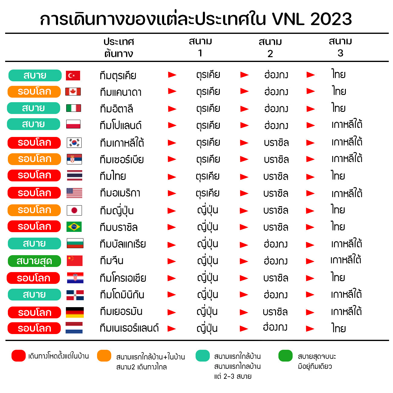 VNL 2023 :: ภาพรวมการเดินทางแข่งของทุกทีม ทีมใดเดินทางสบายสุด ทีมใดเดินทางโหดหินสุด!!! เบะปากใส่จีนก่อนเลย!