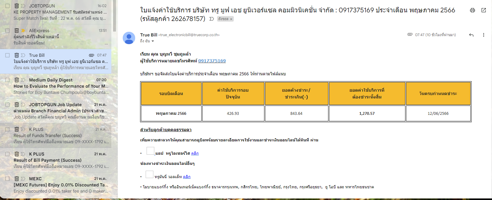 วันนี้เปิดอีเมลหาผลการสมัคงานไปเจอทรูเรียกเก็บยอดมาตลอด เซ็งเลย ทำอย่างไรดีครับขอบคุณครับ