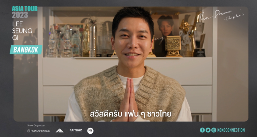 2023 LEE SEUNG GI ASIA TOUR: The Dreamer’s Dream – Chapter 2 in Bangkok ที่จะจัดขึ้นในวันเสาร์ที่ 15 กรกฎาคมนี้ ณ ยูเนี่ยนฮอลล์ ศูนย์การค้ายูเนี่ยนมอลล์ โดยได้ TG Entertainment ร่วมด้วย FAITH&D Entertainment จับมือกับ KOKO Connection Thailand พร้อมเสิร์ฟความสนุกกับคอนเสิร์ตครั้งพิเศษให้เหล่าไอเรนไทยได้มันส์ไปกับการแสดงที่ อีซึงกิ เตรียมพร้อมมาระเบิดความสนุกไปพร้อมกับแฟนๆ ทุกคนในงานนี้