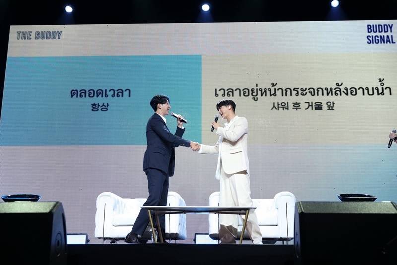 “BUDDY SIGNAL” คือ KEYWORD ต่อมาที่จะพิสูจน์กันว่า 2 หนุ่มจะใจตรงกันแค่ไหน โดยมีคำถาม 12 ข้อ ถ้าตอบตรงกันเกิน 5 ข้อ จะแรนดอมแฟนคลับผู้โชคดีขึ้นมาถ่ายรูปด้วยกันบนเวที ซึ่งงานนี้ มินฮยอก กับ จองชิน ตอบผิดแค่ 3 ข้อ ทำเอาแฟนๆ เฮกันลั่น แต่คำตอบที่เด็ดสุดคงเป็น มินฮยอก ที่ตอบว่า “หลังอาบน้ำมายืนหน้ากระจกทันที สารภาพว่าผมอันดับ 1” ต่อมาเป็น “DOG LOVER & CAT LOVER” ทาสน้องหมาอย่าง จองชิน กับ ทาสน้องแมวอย่าง มินฮยอก ถึงกับยิ้มหวานแววตาเปลี่ยนทันที เริ่มจาก จองชิน คุณพ่อน้องซิมบ้า วัย 9 ปี ที่อ้อนเก่งจนไม่อยากจากไปไหนไกล ขนาดจะมางานแฟนมีตติ้งที่เมืองไทย ซิมบ้า ยังส่งข้อความมาคุยด้วยตลอด เป็นกำลังใจที่ดีที่สุด จนไม่คิดจะเลี้ยงน้องหมาตัวไหนอีกเลยตลอดชีวิต แล้วก็ถึงคิว มินฮยอก ทาสแมว คุณพ่อน้องชิชิ กับ น้องตาต้า วัย 9 ปีเท่ากัน ที่เม้าท์ลูกๆ ว่า “เวลาผมกลับบ้านเค้าจะมายืนรอที่หน้าประตู แต่พอผมเปิดประตูเข้าไปเค้าก็จะวิ่งหายไปเลย เค้าคิดว่าผมเป็นทาสเค้าจริงๆ” ว่าแล้วก็เข้าเกมทายคำโดยใช้เสียง “โฮ่งๆ” กับ “เมี๊ยวๆ” แทนคำใบ้ ให้เวลา 90 วินาที ซึ่งต้องทายถูก 6 ข้อขึ้นไป ถ้าใครแพ้ต้องเต้น Sexy Dance แต่กลายเป็นว่าสองหนุ่มผลัดกันใบ้ผลัดกันทายจนทายถูกไปเกิน 6 ข้อ โดยเฉพาะคำตอบ “ต้มยำกุ้ง” ที่ มินฮยอก ทายถูกเพราะจำสีหน้าตอน จองชิน ซดน้ำต้มยำกุ้งสุดแซ่บมันติดตามาก เล่นเอาเซอร์ไพร์สกันทั้งฮอลล์ ถึงจะชนะแต่สองหนุ่มก็ใจดีรับบทเซ็กซี่เมี๊ยว กับ เซ็กซี่โฮ่งเต้นไปถอดสูทยั่วๆ ไปให้สาวๆ ได้กรี๊ดกันสนั่น พอเต้นเสร็จ มินฮยอก ต้องขอน้ำแตงโมปั่นเป็นรางวัลมาดื่มเพื่อลดอุณหภูมิสุดร้อนแรงกันเลยทีเดียว