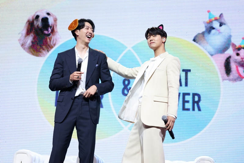 “DOG LOVER & CAT LOVER” ทาสน้องหมาอย่าง จองชิน กับ ทาสน้องแมวอย่าง มินฮยอก ถึงกับยิ้มหวานแววตาเปลี่ยนทันที เริ่มจาก จองชิน คุณพ่อน้องซิมบ้า วัย 9 ปี ที่อ้อนเก่งจนไม่อยากจากไปไหนไกล ขนาดจะมางานแฟนมีตติ้งที่เมืองไทย ซิมบ้า ยังส่งข้อความมาคุยด้วยตลอด เป็นกำลังใจที่ดีที่สุด จนไม่คิดจะเลี้ยงน้องหมาตัวไหนอีกเลยตลอดชีวิต แล้วก็ถึงคิว มินฮยอก ทาสแมว คุณพ่อน้องชิชิ กับ น้องตาต้า วัย 9 ปีเท่ากัน ที่เม้าท์ลูกๆ ว่า “เวลาผมกลับบ้านเค้าจะมายืนรอที่หน้าประตู แต่พอผมเปิดประตูเข้าไปเค้าก็จะวิ่งหายไปเลย เค้าคิดว่าผมเป็นทาสเค้าจริงๆ” ว่าแล้วก็เข้าเกมทายคำโดยใช้เสียง “โฮ่งๆ” กับ “เมี๊ยวๆ” แทนคำใบ้ ให้เวลา 90 วินาที ซึ่งต้องทายถูก 6 ข้อขึ้นไป ถ้าใครแพ้ต้องเต้น Sexy Dance แต่กลายเป็นว่าสองหนุ่มผลัดกันใบ้ผลัดกันทายจนทายถูกไปเกิน 6 ข้อ โดยเฉพาะคำตอบ “ต้มยำกุ้ง” ที่ มินฮยอก ทายถูกเพราะจำสีหน้าตอน จองชิน ซดน้ำต้มยำกุ้งสุดแซ่บมันติดตามาก เล่นเอาเซอร์ไพร์สกันทั้งฮอลล์ ถึงจะชนะแต่สองหนุ่มก็ใจดีรับบทเซ็กซี่เมี๊ยว กับ เซ็กซี่โฮ่งเต้นไปถอดสูทยั่วๆ ไปให้สาวๆ ได้กรี๊ดกันสนั่น พอเต้นเสร็จ มินฮยอก ต้องขอน้ำแตงโมปั่นเป็นรางวัลมาดื่มเพื่อลดอุณหภูมิสุดร้อนแรงกันเลยทีเดียว
