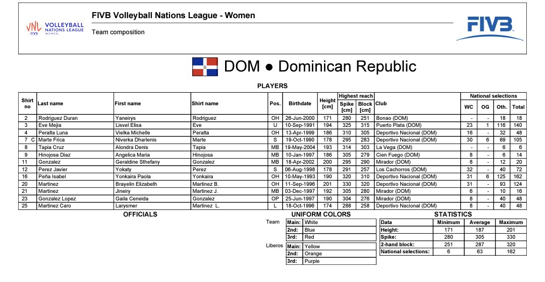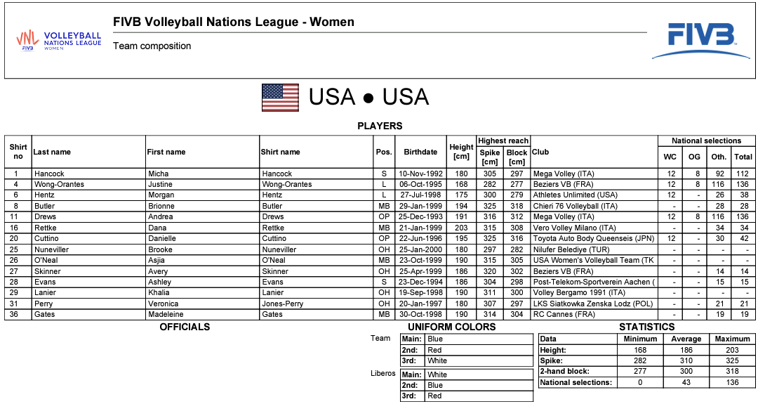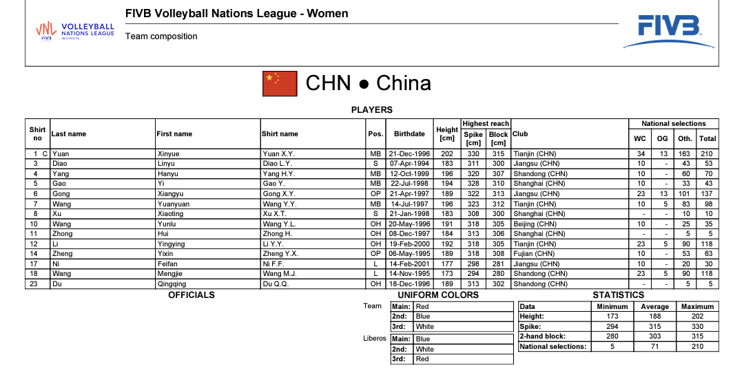 [VNL2023] รายชื่อสัปดาห์แรกของทีมชาติจีน เนเธอร์แลนด์ โดมินิกัน อเมริกา