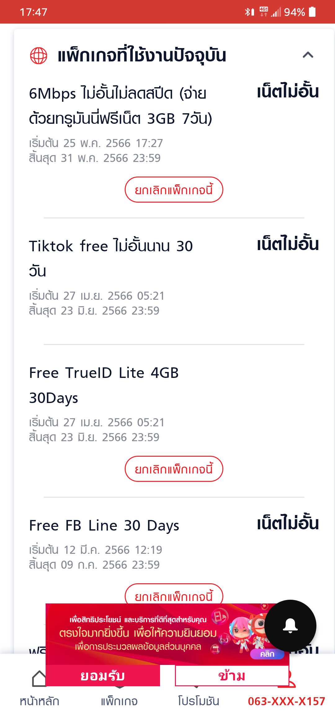 ข้อความแจ้งมาว่าคุณสมัครแพ็กเกจ 6mbps 7วัน อยากทราบว่าสมัครให้ทำไม คนอุส่าเติมเงินใว้รอหักแพ็ก30 Mbps 235.-มาตัดรอบ