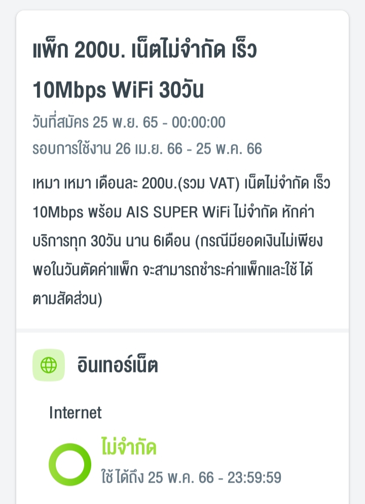 ปกติใช้Ais แพ็คเกจเสริมเน็ต เดือนละ 200 บาท ความเร็ว 10Mbps ไม่ลดสปีด โทรฟรีในเครือข่าย 15 นาที/ครั้ง อยู่ๆ ถึงรอบเติมเงินก็เติมปกติ แต่เงินหักไม่เท่าเดิมเลยเปิดดูข้อความ โดนเปลี่ยนแพ็คเกจเป็น เดือนละ