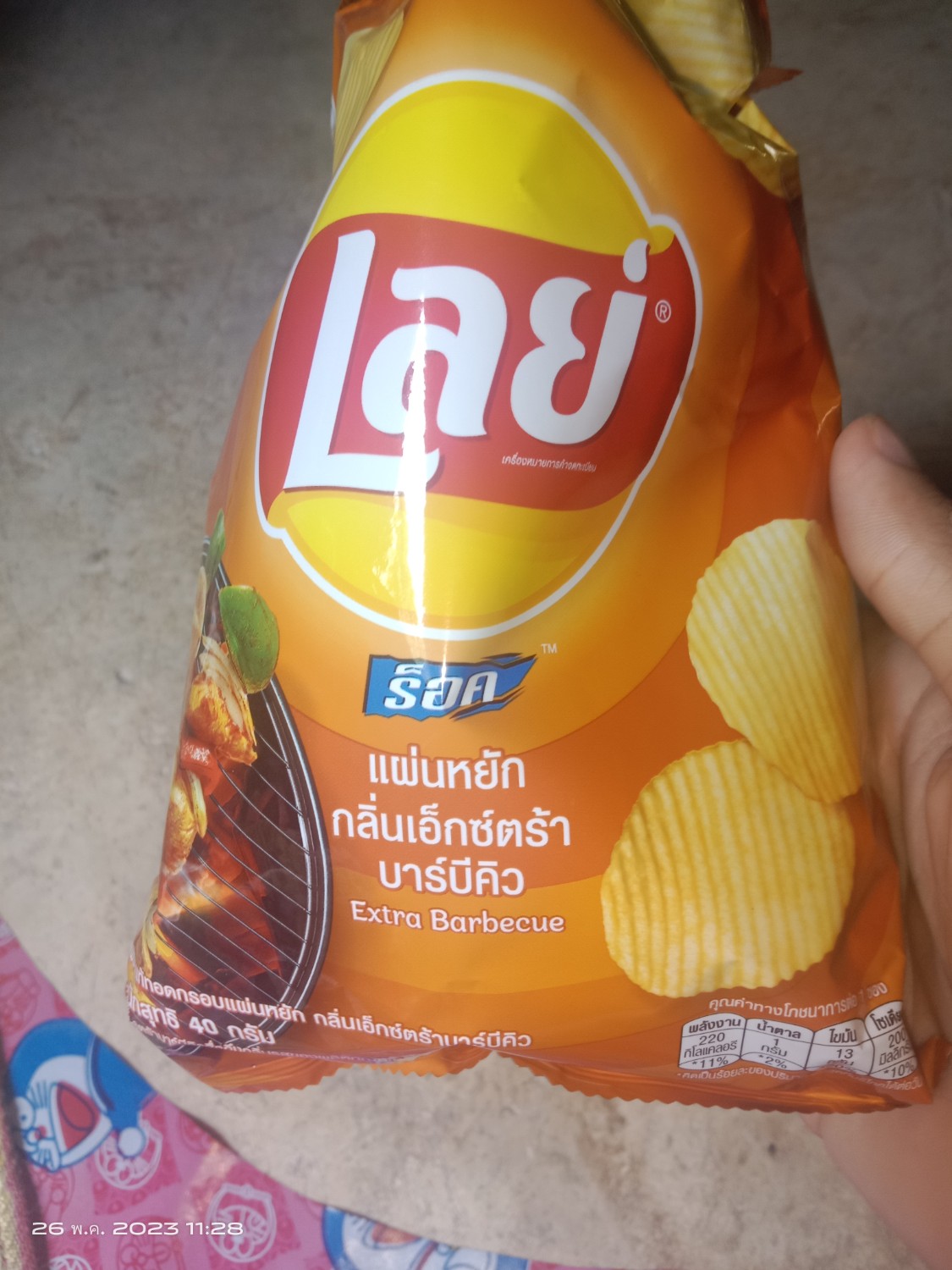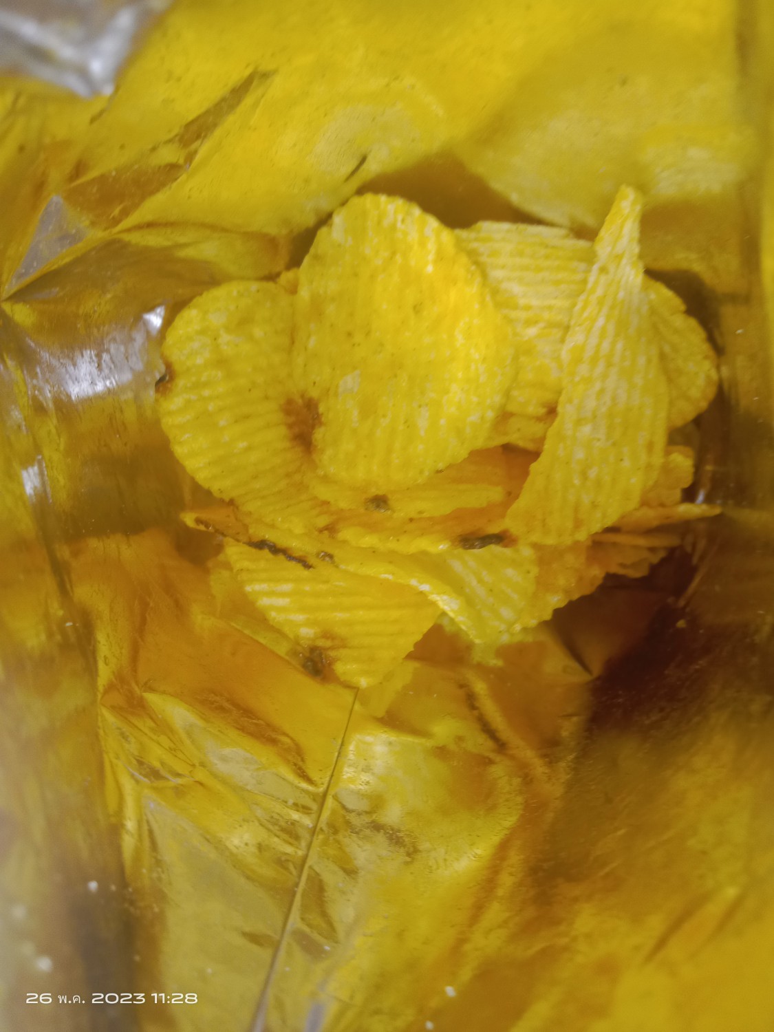 ตอนแรกที่เรากินเราคิดว่าขนมหลุดคิวซีเฉยๆเพราะปกติมีช็อคโกแลตเคลือบแต่ชิ้นที่เรากินไม่มี เรากินไปคำแรกมีอะไรกรุบเราก็แปลกใจนิดหน่อยแต่ก็ไม่ได้อะไรแล้วก็คายอันที่มันกรุบๆทิ้ง พอกินอีกอันก็มีอีก เห็นเป็น