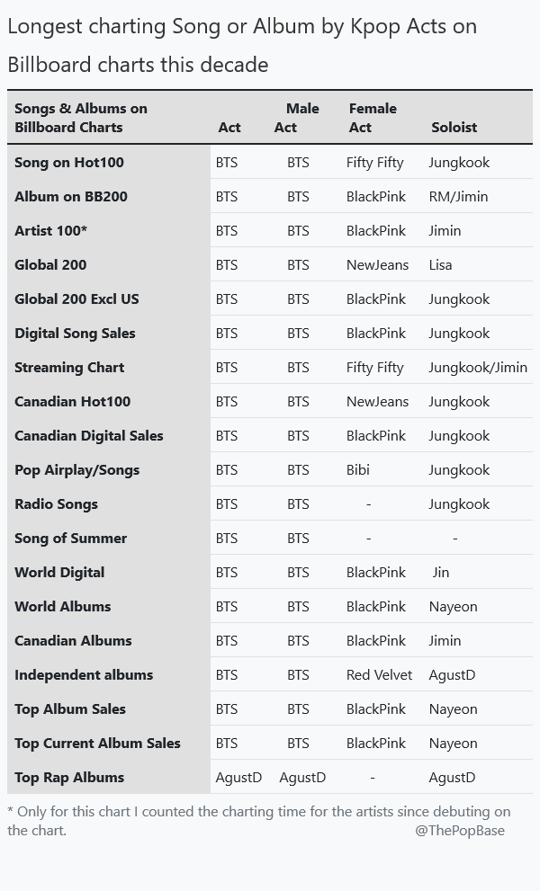 ✨เพลงหรืออัลบั้มโดยศิลปินเคป๊อบที่อยู่บนชาร์ต Billboard ได้นานที่สุดในรอบ 10 ปี