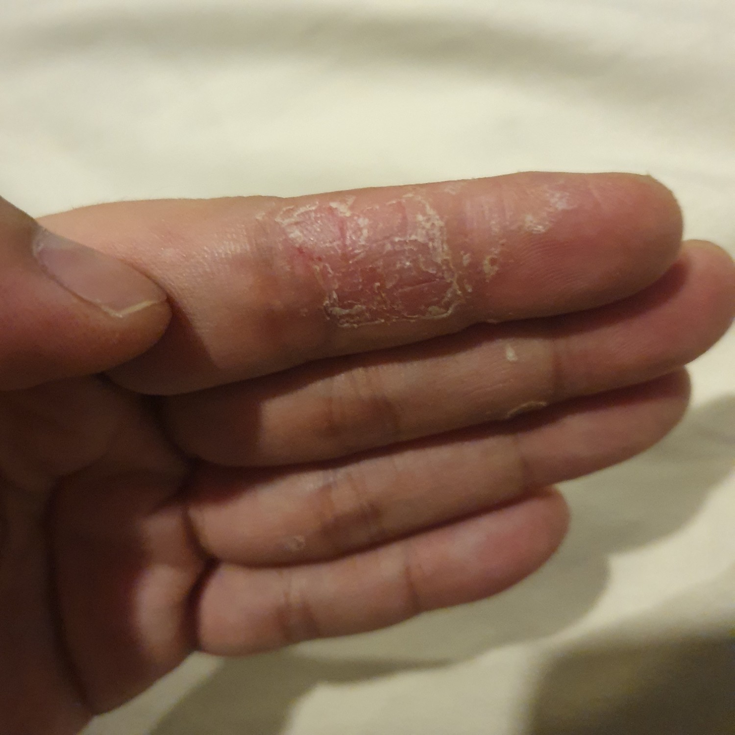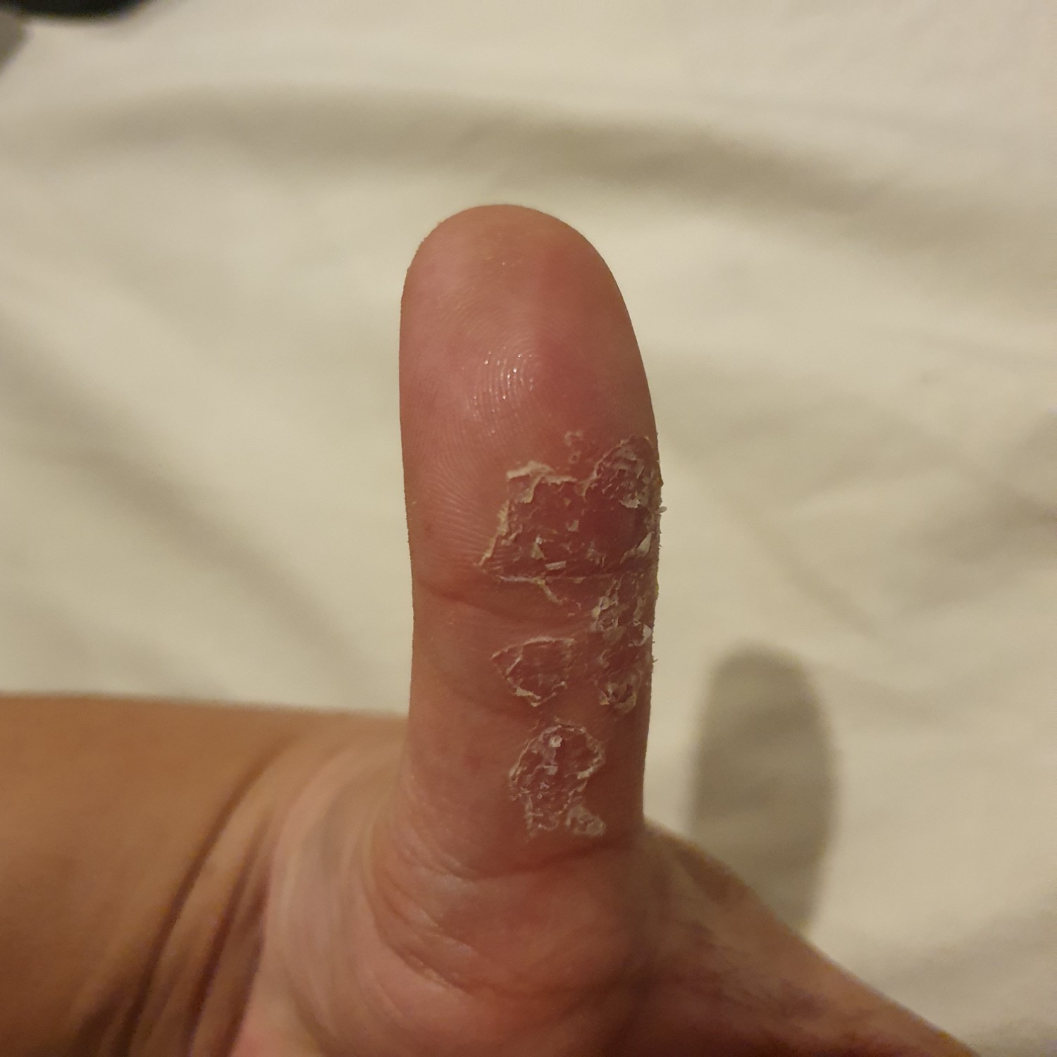 ผมเป็นคนมีเหงื่อออกที่มือ แต่ไม่ทราบว่าทำไมมือผมลอก? ซึ่งผมไม่เคยเป็นมาก่อน มันเหมือนลอกคราบเลยครับ ตอนแรกเริ่มลอกที่บริเวณปลายนิ้วแล้วลามลงมาที่ฝ่ามือ ตอนนี้ใช้ Hand Cream ทาอยู่ กลัวว่า วาเลนไทน์ ไ
