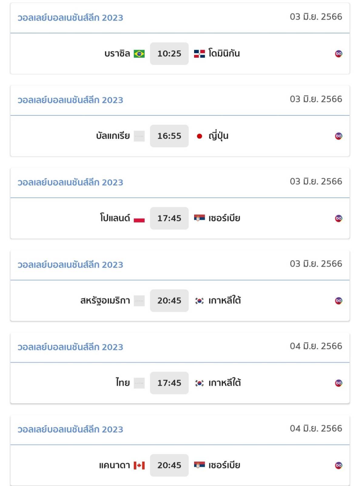 ขอลิ้งดู volleyball VNL 2023