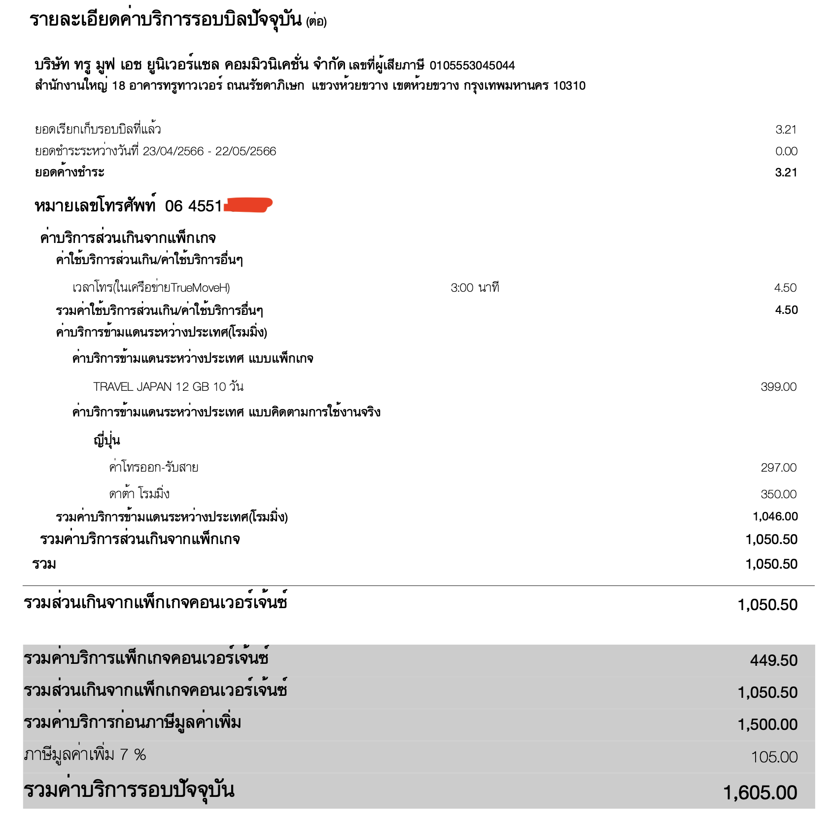 ไปเที่ยว ญี่ปุ่นกับครอบครัว เมื่อ 23/04/23-02/05/23 ซื้อแพ็คเกจของ True : Traval japan12GB 10 วัน แต่กลับมาเจอบิลเรียกเก็บเกินจริง