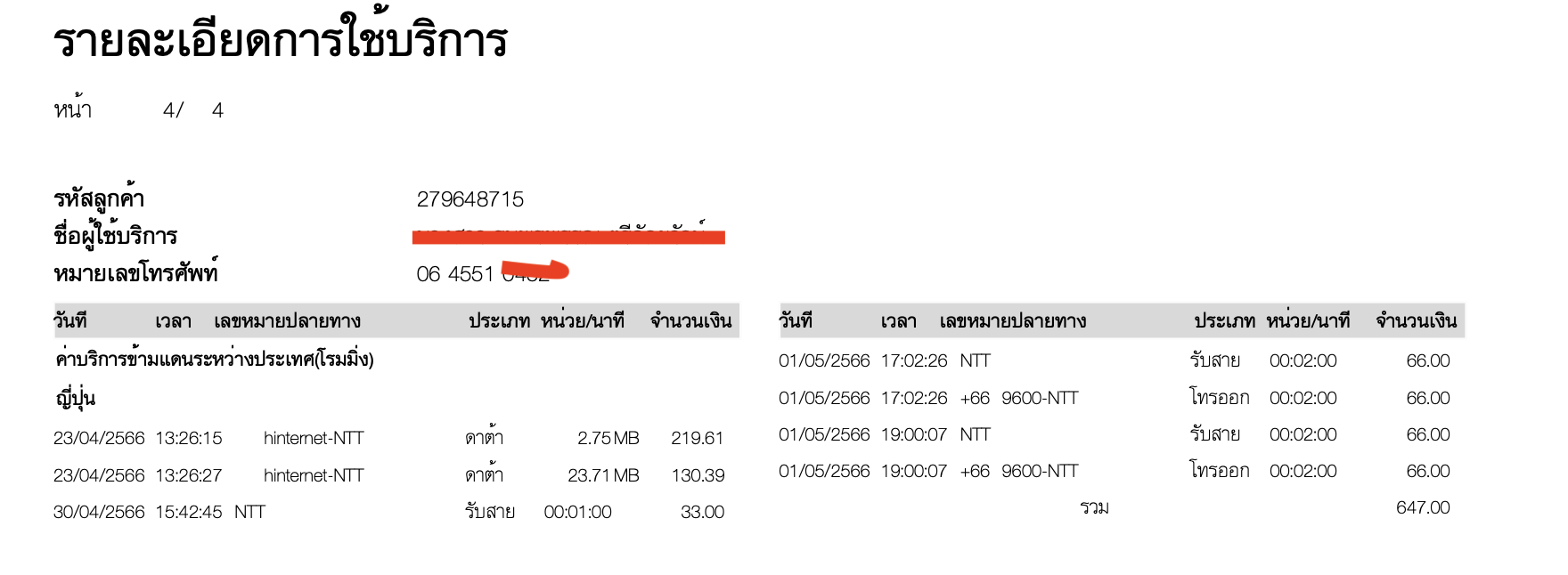 รายละเอียดนั้น เราซื้อแพ็คเกจTraval japan12GB 10 วัน โดยซื้อผ่าน True iService เริ่มใช้งาน 13:00 น. ตามเวลาท้องถิ่น แต่เครื่องลง 13:30 น. ตามเวลาท้องถิ่น แต่กลับมีการเรียกเก็บการใช้ Data ตามเอกสารแนบ ส่วนเรื่องการโทรนั้น เบอร์นี้ไม่เคยให้ใคร และอยู่ไทยก็ไม่เคยมีใครโทรมา ซึ่งพอมาตรวจสอบดูเบอร์ 095-387-0827 น่าจะเป็นเบอร์ของทรูเอง แต่โทรเข้ามาหลายครั้ง เด็กก็ตัดสายทิ้ง พอไปถาม พนักงานที่เซ็นทรัลอีสวิว พนักงานบอกว่า ตัดสายเท่ากับรับสาย แถมยังหัวเราะใส่เราอีก แย่มาก แต่ในบิลตามเอกสารแนบกลับมาการคิดค่าบริการ ถ้าตัดสายทิ้งคิด 1 นาที พอเข้าใจได้ แต่ 2 นาทีนี่คืออะไรหรอ