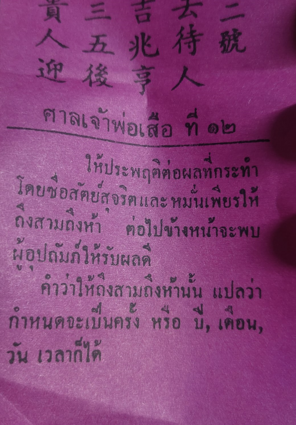 ช่วยแปลความหมายใบเซียมซีศาลเจ้าพ่อเสือให้หน่อยค่ะ