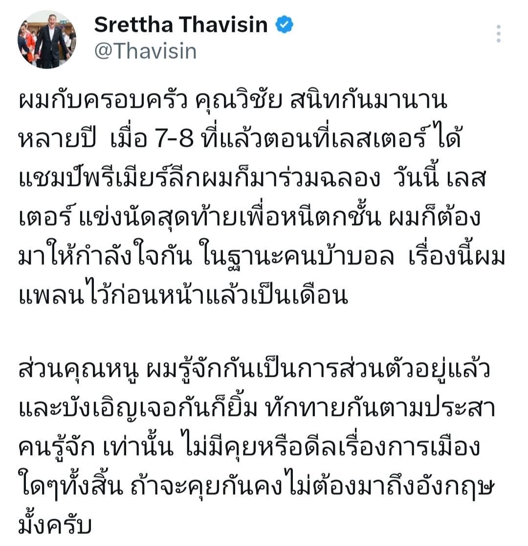 โล่งอกไปที เศรษฐาบอกว่าเจออนุทินที่อังกฤษ แค่บังเอิญเจอกัน