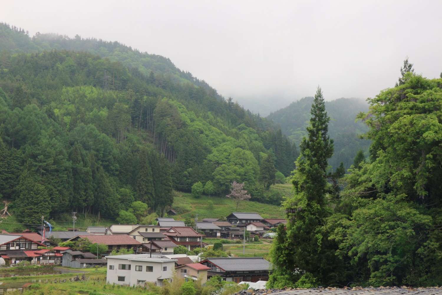 รถบัสขับไป Hirayu ประมาณ 1 ชั่วโมง ตามข้างทางก็เป็นวิวชนบท สลับเขาทางคดเคี้ยวพอประมาณ ตอนเราไปบรรยากาศมีหมอกลอยตามยอดไม้ยามเช้าบรรยากาศดูดีมากนั่งมองเพลินไม่ได้หลับเลย