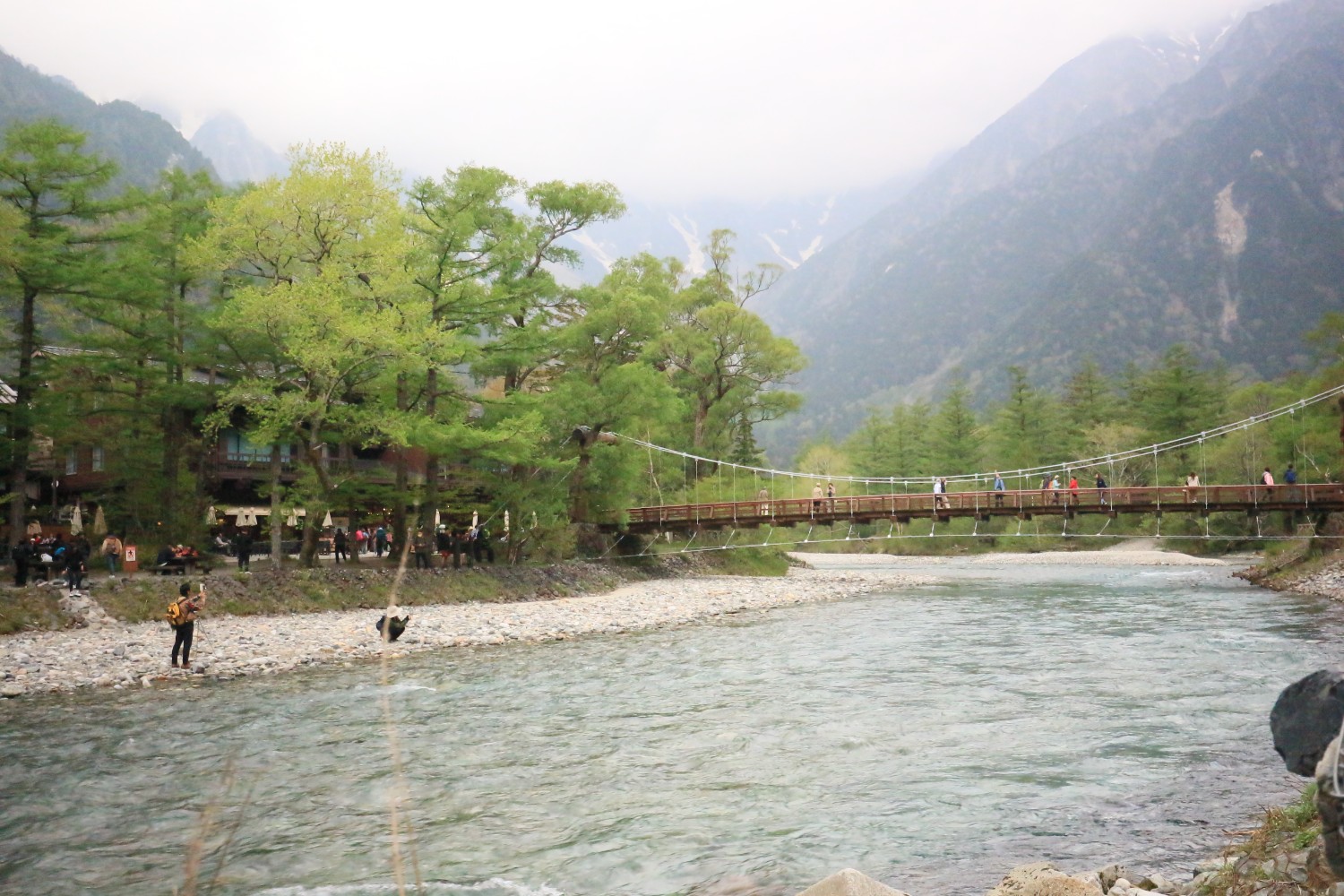 ด้วยฟ้าครึ้ม จนมองไม่เห็นยอดเขา เมื่อมาถึงสะพานกัปปะ เราจึงได้ตัดสินใจว่าเอาล่ะเราจะต้องมาซ่อมแน่ๆ อีกครั้งในวันที่ 25 พ.ค. จึงต้องหาข้อมูลต่างๆและเตรียมจองตั๋ว ซึ่งจากเว็บพยากรณ์อากาศที่เราดูทั้งหมดบอกว่าวันนั้นจะไม่มีฝน บางเว็บบอกมีแดดในตอนเช้า บางเว็บบอกมีแดดทั้งวัน บางเว็บบอกมีเมฆมาก จากที่เคยหาข้อมูลมาเบื้องต้นมา ถ้ามาทาง Matsumoto จะมีจองที่นั่ง เราเลยจัดการดูรอบรถบัส หารอบที่นั่งรถบัสตรงไม่ต้องเปลี่ยนสาย