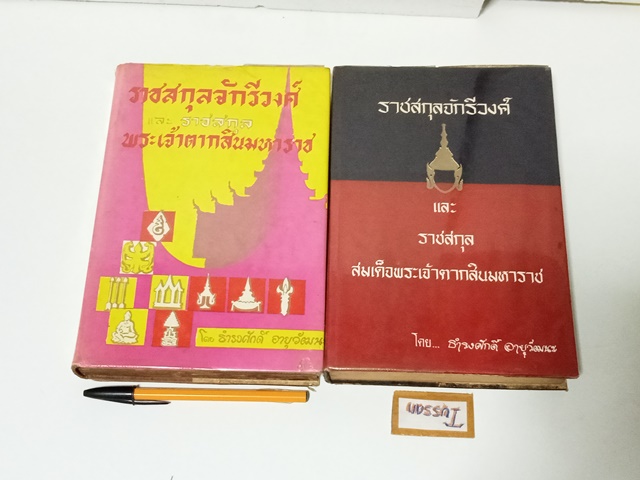 ราชสกุลจักรีวงศ์ และ ราชสกุลสมเด็จพระเจ้าตากสินมหาราช 2 เล่มครบชุด -พิมพ์ครั้งแรก- เรียบเรียงโดยธำรงศักดิ์ อายุวัฒนะ สำนักพิมพ์ อโยธยา จัดพิมพ์ครั้งที่ 1 พ.ศ.2511 ปกแข็ง มีใบหุ้มปก จำนวนหน้ารวม 997 หน้า