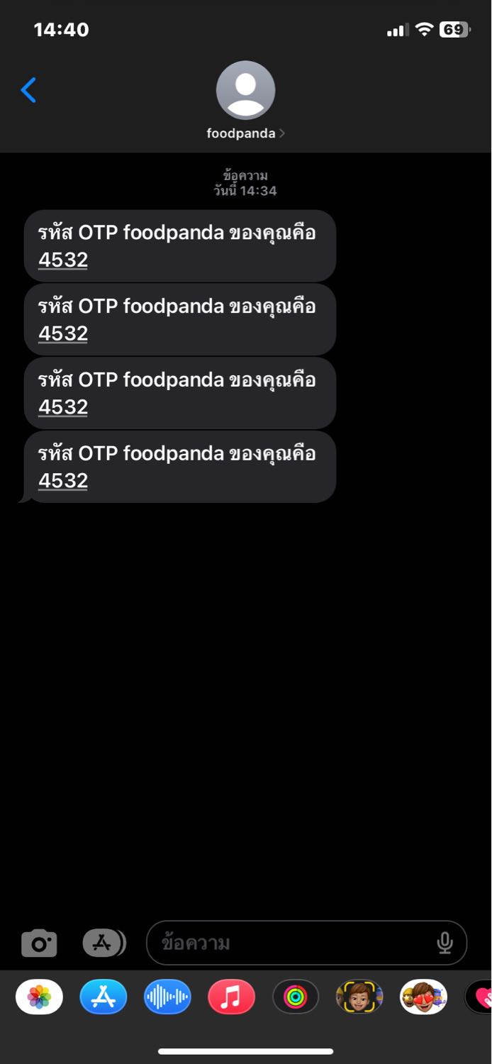 เมื่อวันที่ 2/6/2566 มีการส่ง เลข otp ของ line และ foodpanda มายังเครื่องเรา ทั้งที่ไม่กดขออะไร