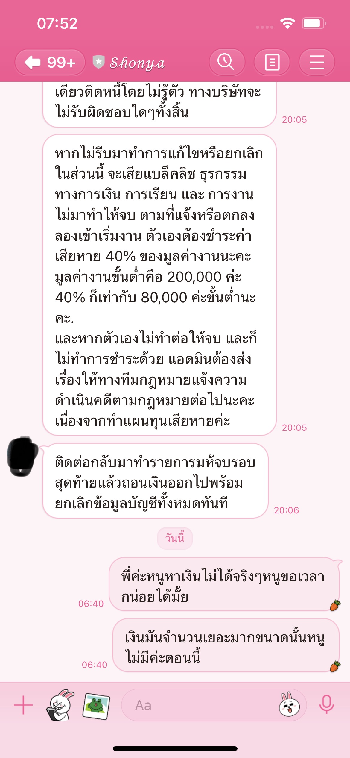 เรื่องมีอยู่ว่าเราไปกู้เงินออนไลน์ในแอพ X มาค่ะ แต่เรากู้ในยอด 3,xxx ตอนนี้เราส่งไปเกินต้นมากพอสมควรแล้ว จำนวน 9,xxx บาท คือเราเริ่มไม่ไหวเพราะช่วงหลังก็มีปัญหาจริง สภาพการเงินทางบ้านแย่ เราก็ทยอยโอ