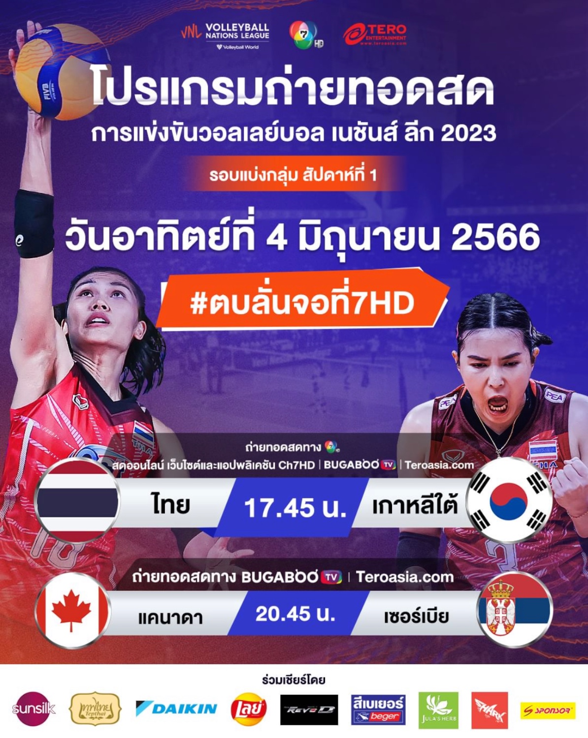 โปรแกรมการแข่งขัน VNL2023 วันที่ 4 มิ.ย. 66