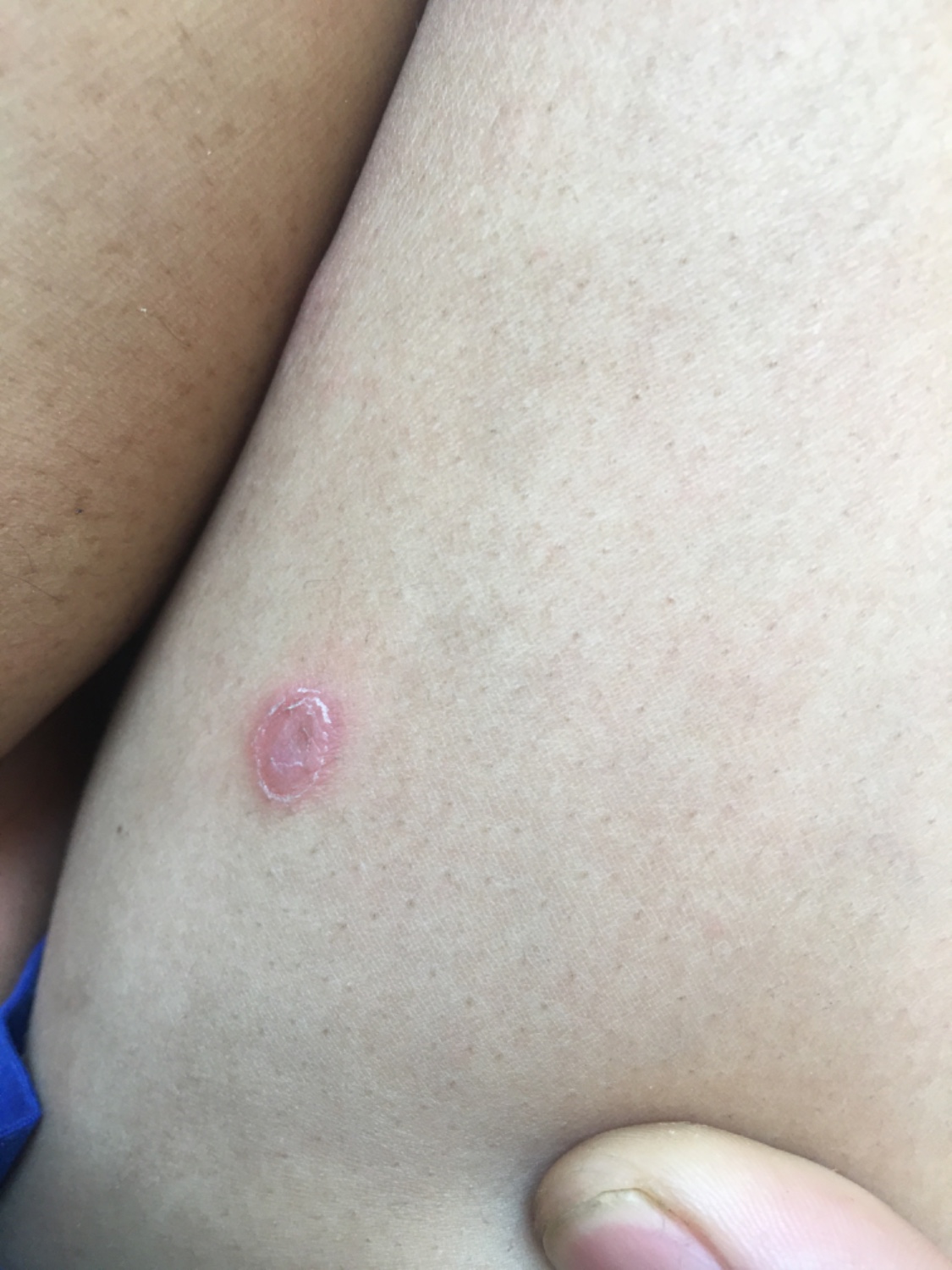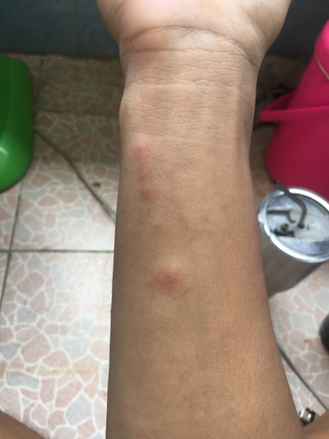 ขึ้นที่แขน คันเล็กน้อย สงสัยว่าแพ้ครีมอาบน้ำครับ พึ่งขึ้นเลย ส่วนอันที่เปนแผลคือเกาครับ ขอบคุณครับ