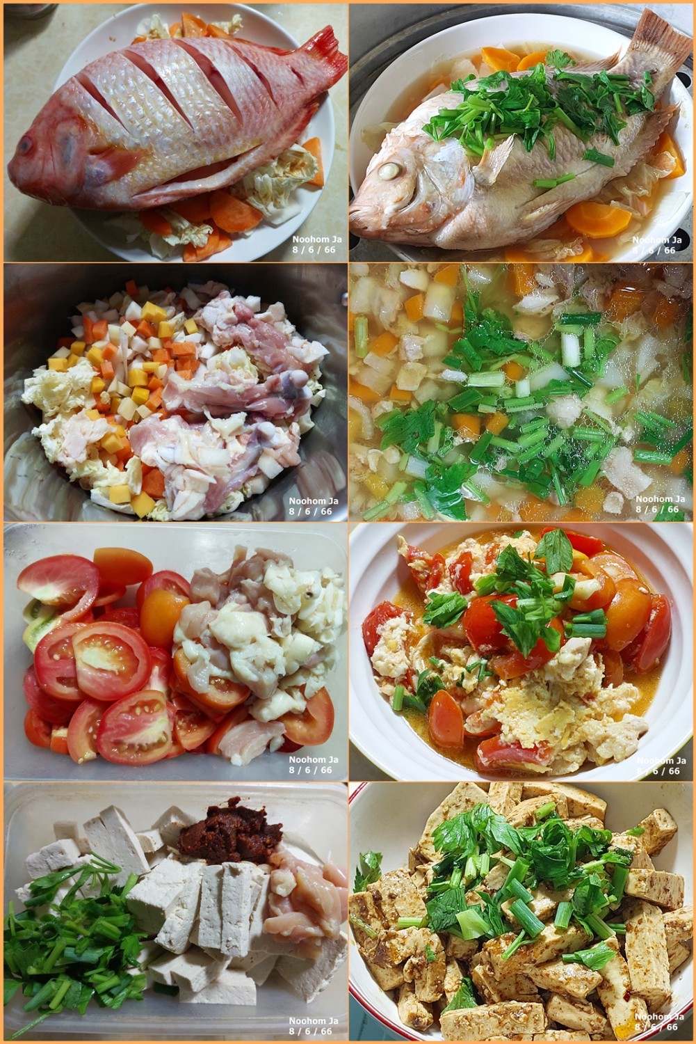 แนะนำรายการอาหารวันนี้ ปลาทับทิมนึ่งซีอิ้ว..ซุปหัวผัก..ผัดมะเขือเทศใส่ไข่..เต้าหู้ผัดพริกแกง พออิ่มอุ่นทั้งวัน ขอให้เพื่อนประสบแด่ความสุขสนุกไปกับหน้าที่การงาน สติสมาธิปัญญาผ่องใส โชคดี