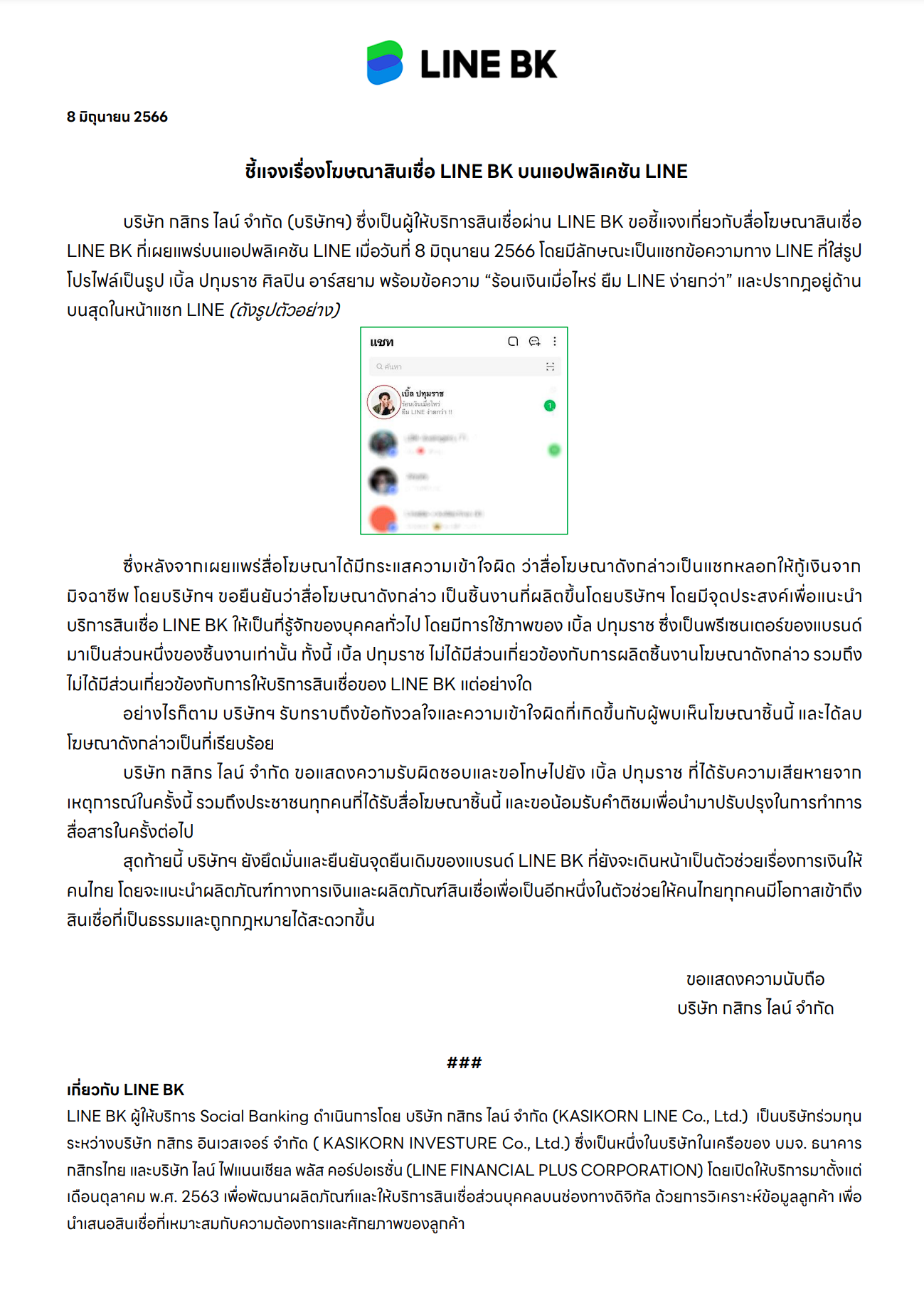 เผื่อใครจะสงสัยเรื่องโฆษณา LINE BK (อันน่าตกใจ) เมื่อวาน มีคำชี้แจงแล้ว