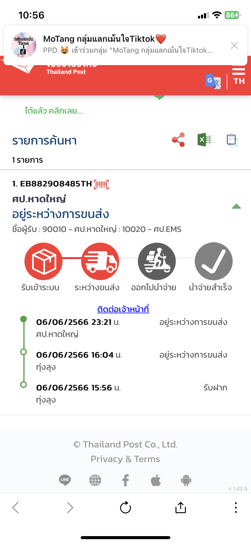 สถานะไปรษณีย์EMSไม่อัพเดท